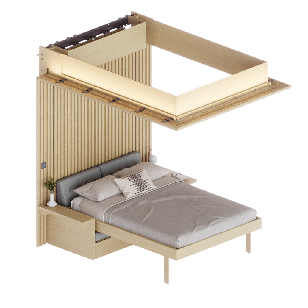Το Cloud Bed Sofa Edition ανυψώνει το κρεβάτι στην οροφή (που συνήθως είναι απλώς άχρηστος χώρος), το κρύβει σε ένα ενσωματωμένο πλαίσιο και όταν έρθει η ώρα για ύπνο, κατεβαίνει εύκολα στο πάτωμα καλύπτοντας τον καναπέ. Mπορεί εύκολα να τοποθετηθεί σε υπάρχουσες δομές (με ελάχιστο ύψος 2,18m) ή να εγκατασταθεί σε νέες κατασκευές. Παραδίδεται σε επίπεδη συσκευασία για επιτόπου συναρμολόγηση και δεν χρειάζεται μόνιμη εγκατάσταση, ώστε να μπορεί εύκολα να μεταφερθεί αν χρειαστεί. Οι κρυφές χαλύβδινες ράγες στερεὠνονται στον τοίχο με κρυφό αντίβαρο. Είναι εξοπλισμένο με έξυπνη τεχνολογία που αποτελείται από ρομποτικά εξαρτήματα, ώστε το κρεβάτι να κινείται κάθετα και έχει πιστοποιητικό ασφαλείας για απρόσκοπτη χρήση.