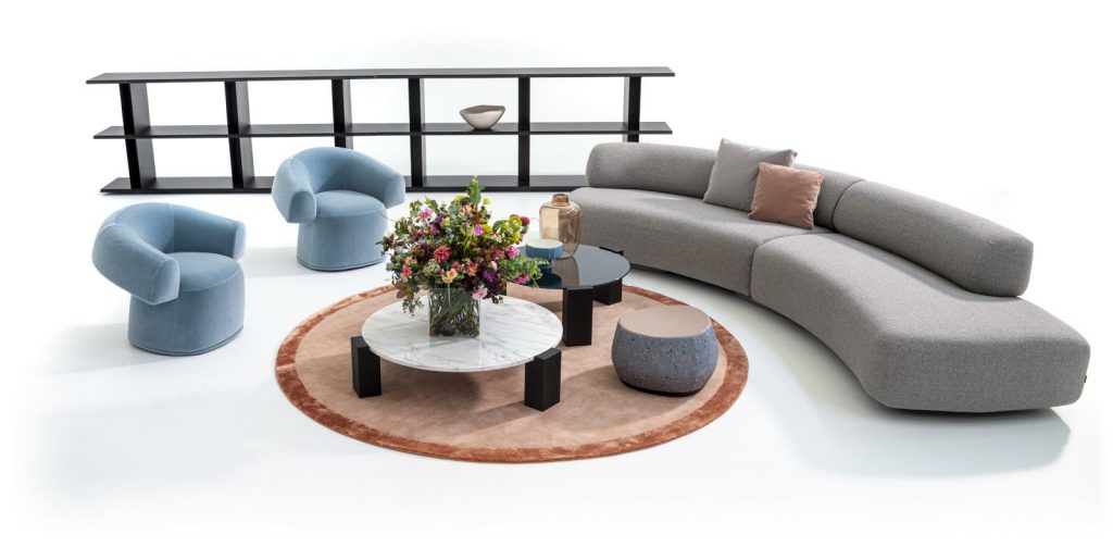 Ξεχωρίζουμε το Noonu της B&B Italia, μια σύνθεση επίπλου του Antonio Citterio, που εμπνεύστηκε από ένα σύμπλεγμα νησιών στις Μαλδίβες.