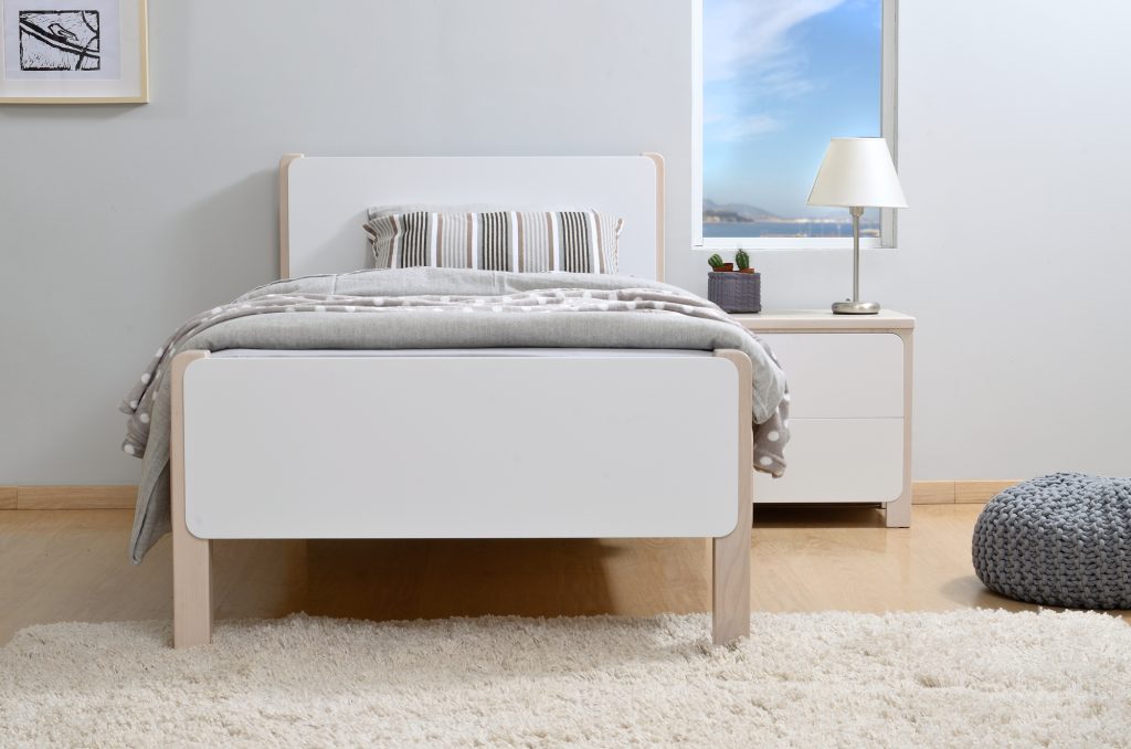 Τα πλαίσια του κρεβατιού και ο σκελετός του κομοδίνου και του γραφείου έχουν κατασκευαστεί από μασίφ οξιά. Οι υπόλοιπες επιφάνειες έχουν κατασκευαστεί από MDF/CB επενδεδυμένο με καπλαμά οξιάς. Παράλληλα, αξίζει να ξέρετε, ότι το έπιπλο έχει κατασκευαστεί με τέτοιο τρόπο έτσι ώστε στο κρεβάτι να μπορούν να τοποθετηθούν συρτάρια αποθήκευσης ή συρόμενος μηχανισμός δεύτερου κρεβατιού.