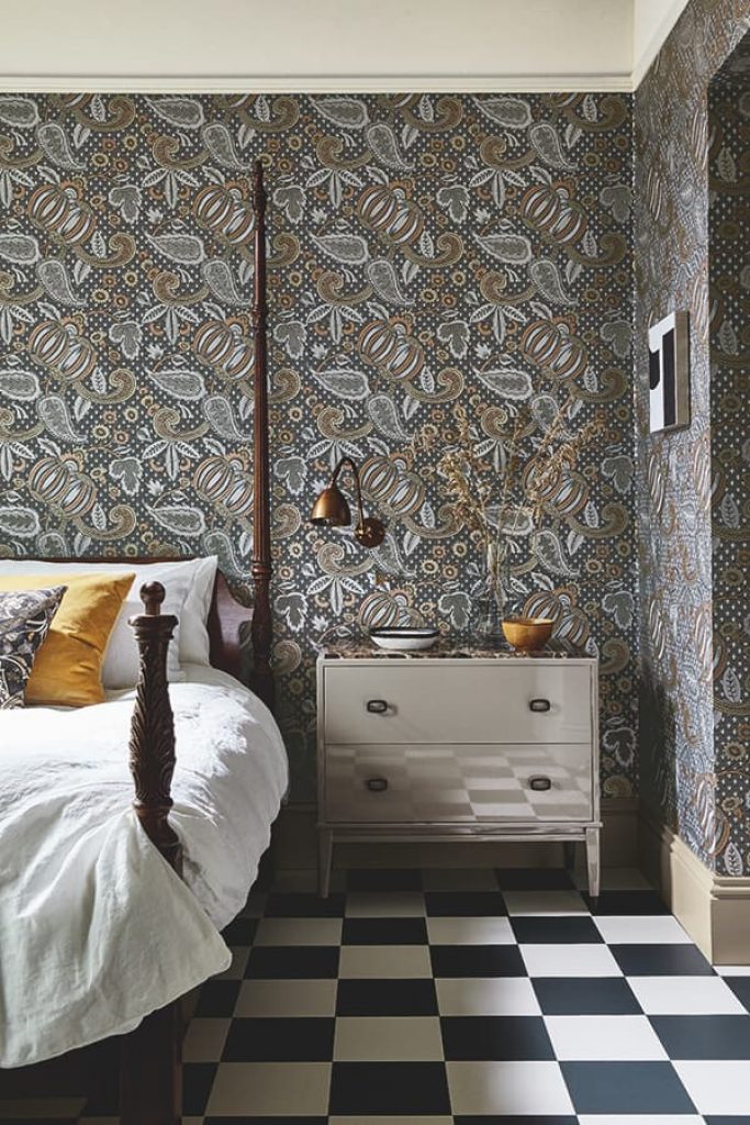 Τα έντονα prints στις ταπετσαρίες μπορούν να φέρουν το μαξιμαλισμό στο σπίτι σας πιο εύκολα από ότι πιστεύετε. Χαρακτηριστικό παράδειγμα η ταπετσαρία Pomegranate από τη συλλογή National Trust Papers της Little Greene. Διατίθεται σε πολλές αποχρώσεις, από κίτρινο έως μπλε. Το ζωντανό μοτίβο paisley με στυλιζαρισμένα μοτίβα ροδιού προέρχεται από το Erddig Hall στην Ουαλία, ένα διατηρητέο κτήριο του 18ου αιώνα.