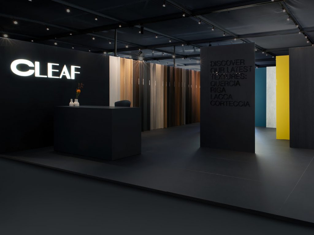 Χαρακτηριστικά, στη Διεθνής Έκθεση SICAM για τη βιομηχανία του επίπλου που λαμβάνει χώρο στο Pordenone της Ιταλίας και στην οποία συμμετέχουν κορυφαίες εταιρίες επίπλου από όλο τον κόσμο, η Cleaf παρουσίασε τέσσερις νέες «υφές» πάνελ σε ένα πολύ ιδιαίτερο installation. Ο λόγος για τις Quercia, Riga, Lacca, Corteccia. Το περίπτερο της Cleaf σχεδιάστηκε από τo ιταλικό studio Bestetti Associati με σκοπό να αναδείξει τα χαρακτηριστικά της νέας συλλογής, ώστε να μπορούν οι επισκέπτες του περιπτέρου να αποκτήσουν μια πιο απτή, αλλά και οπτική αίσθηση της νέας συλλογής. Οι τέσσερις νέες υφές είναι διαθέσιμες σε τρεις διαφορετικούς τύπους προϊόντων. Πάνελ με επικάλυψη (ξύλινα πάνελ των οποίων οι πλευρές έχουν καλυφθεί από διακοσμητικά χαρτιά ή πολυμερικά φύλλα), laminate και edge (κατασκευασμένα από ABS).