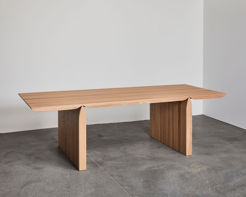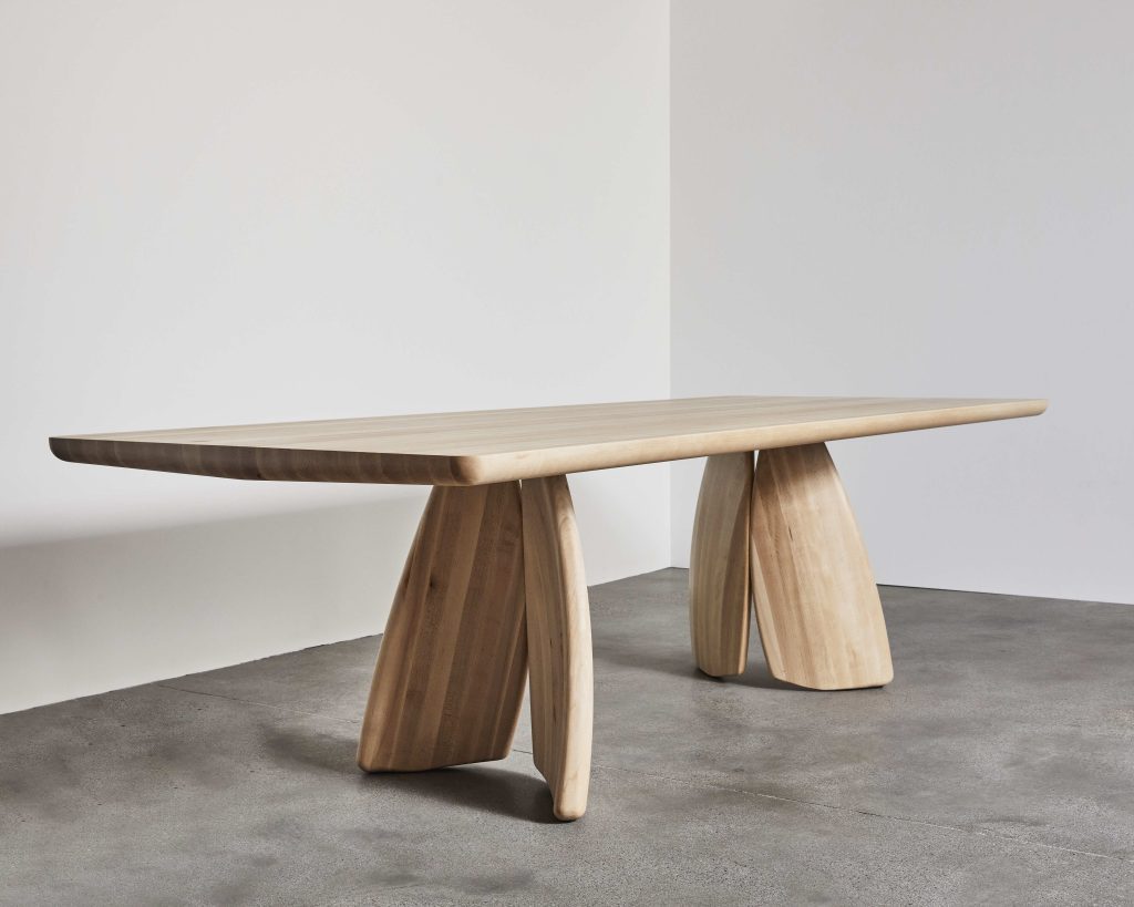 Φτιαγμένο από μασίφ αμερικανική κόκκινη βελανιδιά, το τραπέζι Navalia είναι φτιαγμένο με την τεχνική «via di levare»: από φύλλα ξύλου δηλαδή που σκαλίζονται και σχεδόν πλάθονται μέχρι να επιτευχθεί το τελικό σχήμα. Οι κλίσεις του χτίζουν μια δυναμική μορφή που συνδυάζει αισθητική και δομική αρμονία. Το όνομα του αναφέρεται στο ναυτικό σύμπαν, και κατ’ επέκταση στο αεροναυτικό και στόχο έχει να τονίσει την επίτευξης της αγνής ομορφιάς μέσα από την πρακτικότητα και την αισθητική.