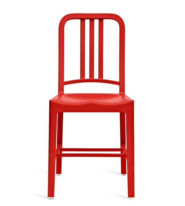To αμερικάνικο brand Emeco παρουσιάζει το Navy Chair, η οποία είναι φτιαγμένη από τουλάχιστον 111 πλαστικά μπουκάλια. Η Navy Chair διατίθεται σε πολλά χρώματα και είναι κατάλληλη τόσο για εσωτερική όσο και για εξωτερική χρήση. Η Emeco στοχεύει να κρατήσει τα πλαστικά απόβλητα PET μακριά από χωματερές και ωκεανούς και για αυτό το σκοπό μετατρέπει το υλικό σε διαχρονικά και ανθεκτικά καθίσματα. Επιθυμία τους είναι να μετατρέψει τα καταναλωτικά απόβλητα σε μια κλασική, βιώσιμη καρέκλα. Έκτοτε, η διαδικασία παραγωγής έχει βελτιωθεί περαιτέρω, έτσι ώστε σήμερα να χρησιμοποιούνται περίπου 150 φιάλες για κάθε καρέκλα.