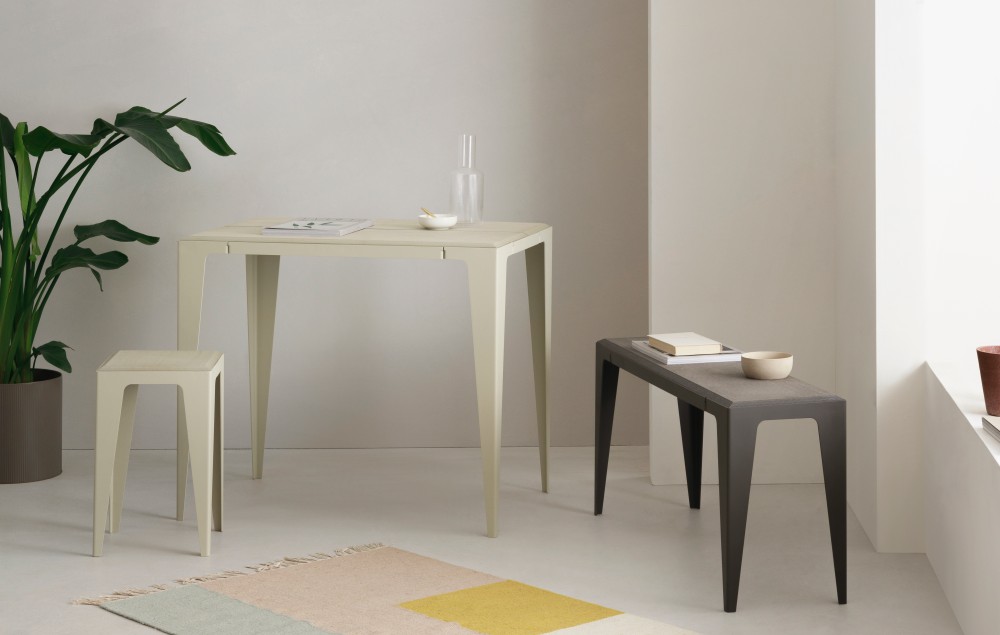 Τα αρθρωτά έπιπλα της WYE εντυπωσιάζουν με έναν κομψό, λειτουργικό σχεδιασμό που πληροί σε υψηλό βαθμό τις απαιτήσεις αντοχής και φιλικότητας προς το περιβάλλον. Για να κατασκευάσει τα έπιπλά της, η WYE χρησιμοποιεί ένα αυτο-ανεπτυγμένο, ανακυκλώσιμο υλικό με βάση το ξύλο που μπορεί να υποστεί επεξεργασία όπως το πλαστικό. Το 83% της Neolign συνίσταται στην ανακύκλωση πιστοποιημένων με PEFC τσιπ ξύλου, ένα υποπροϊόν της βιομηχανίας ξύλου. Υπάρχουν επίσης πολυμερή και χρωματιστές πάστες, που εξασφαλίζουν ότι το υλικό είναι πλήρως χρωματισμένο.