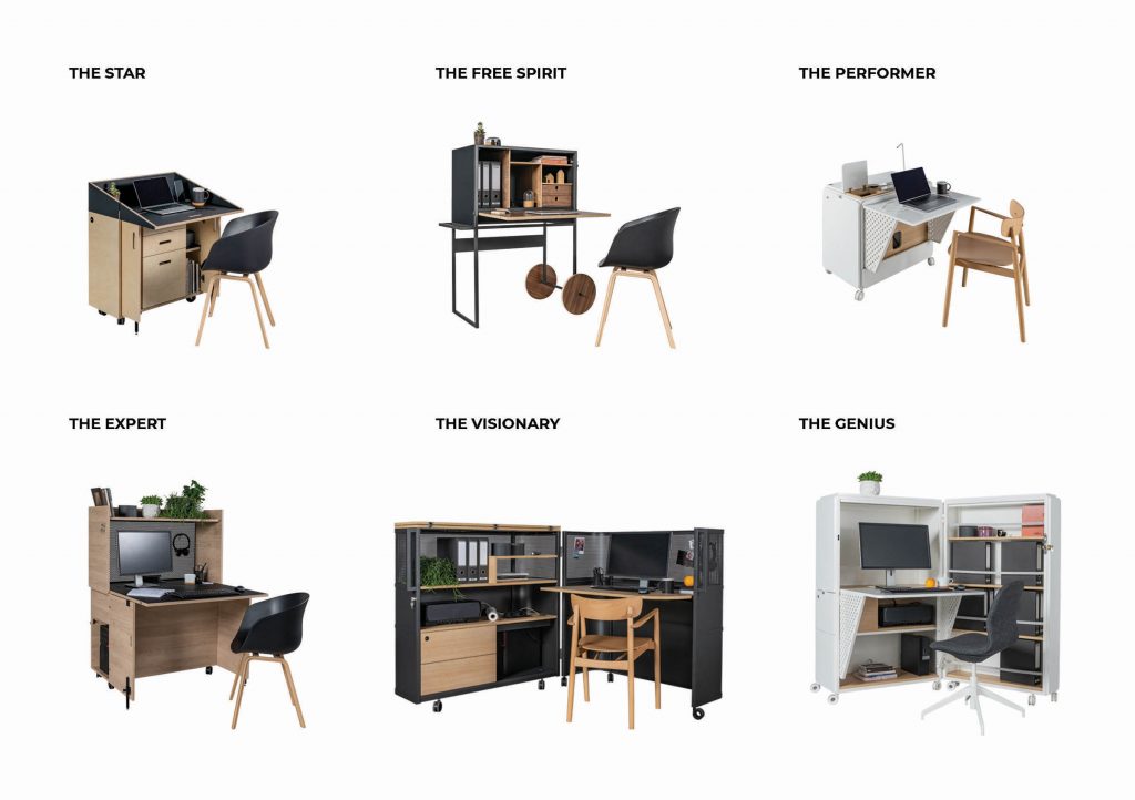 Μια σύνθεση γραφείου που αναδιπλώνεται και αποκτά διαφορετική χρήση. Διατίθεται σε 6 μοντέλα.