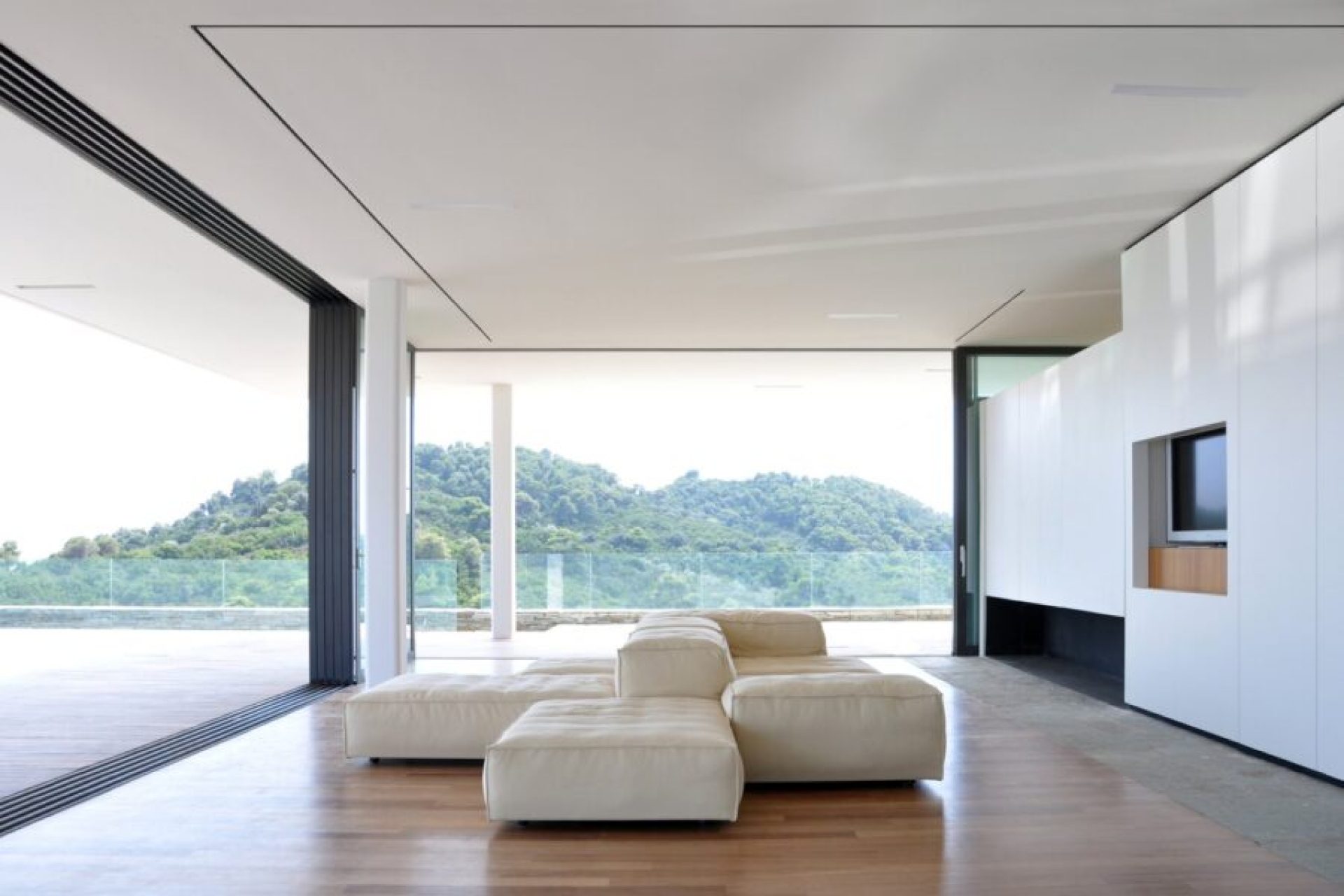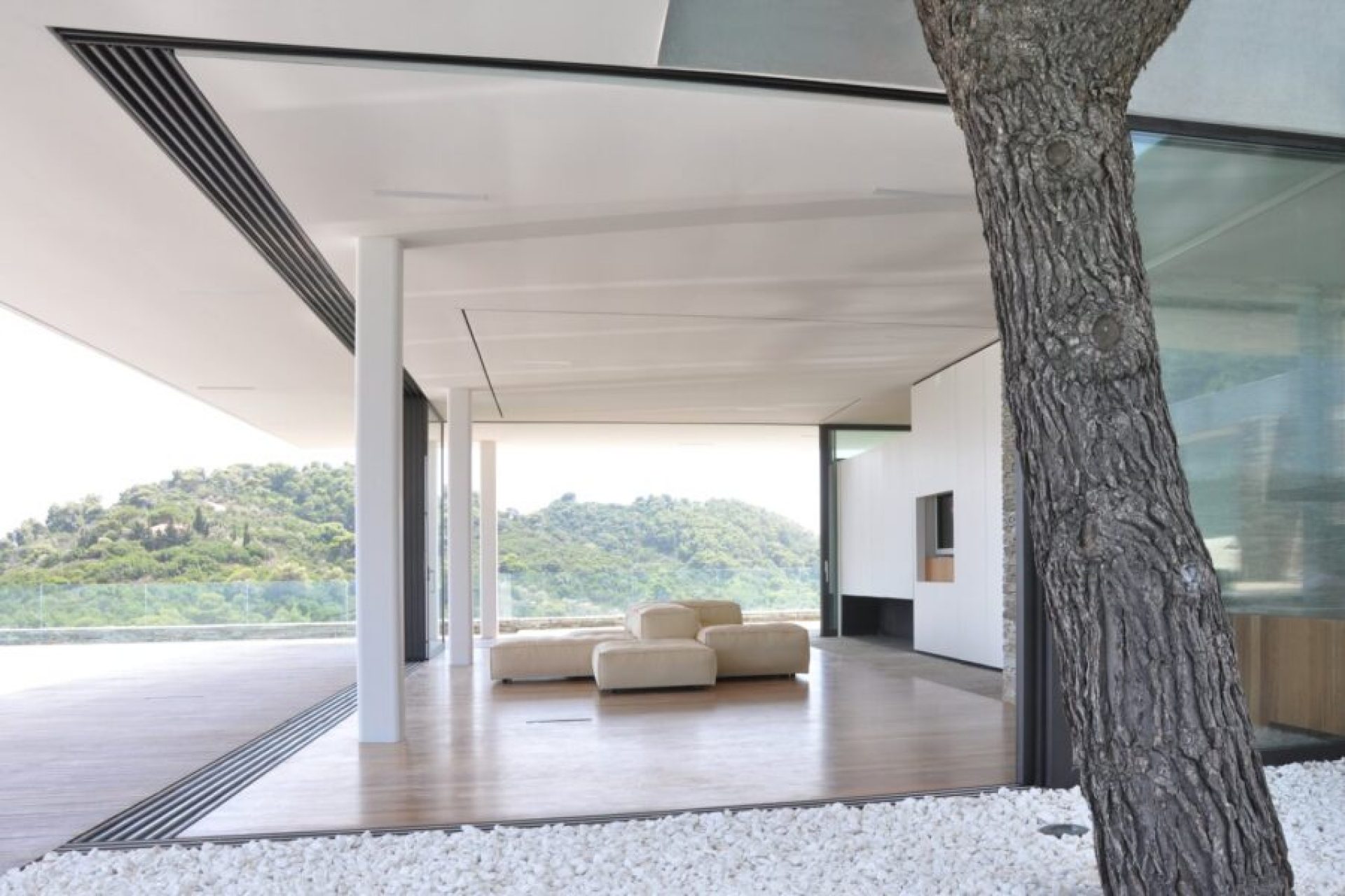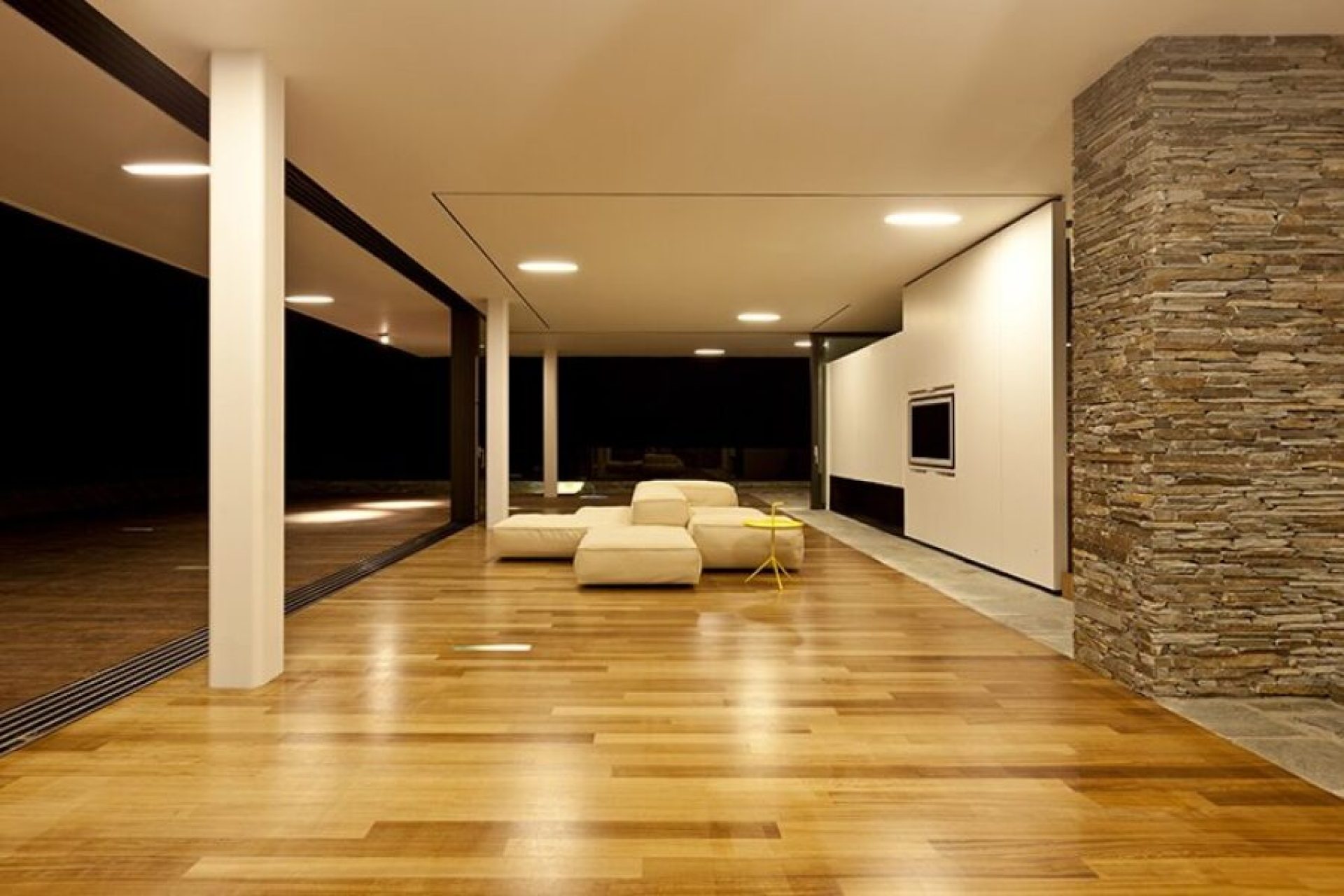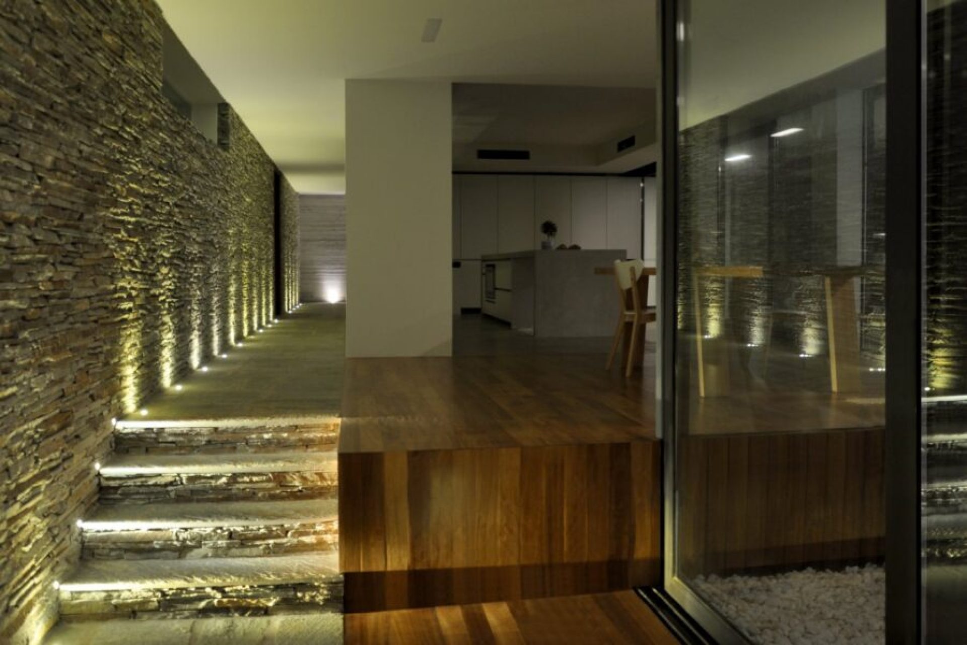 Με αυτή την επιλογή επιτεύχθηκε αισθητική ομοιομορφία και λειτουργικότητα καθώς το εσωτερικό δάπεδο οδηγείτε ομαλά στον εξωτερικό με ευκολία στην κίνηση των χρηστών.