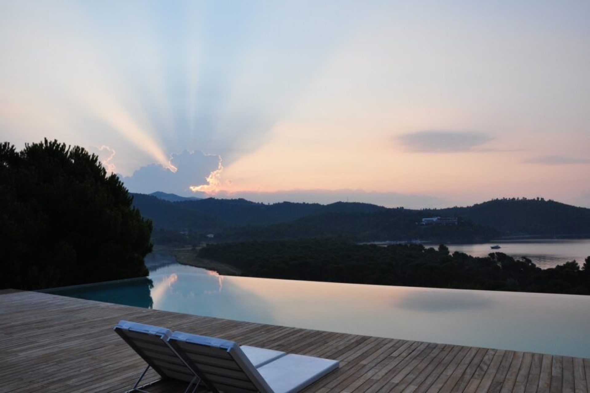 Σε ιδιωτική κατοικία στη Σκιάθο, τοποθετήθηκε μασίφ ξύλινο δάπεδο Dipo Ιρόκο Αφρικής Extra στον εσωτερικό χώρο και στον εξωτερικό (deck Ιρόκο).
