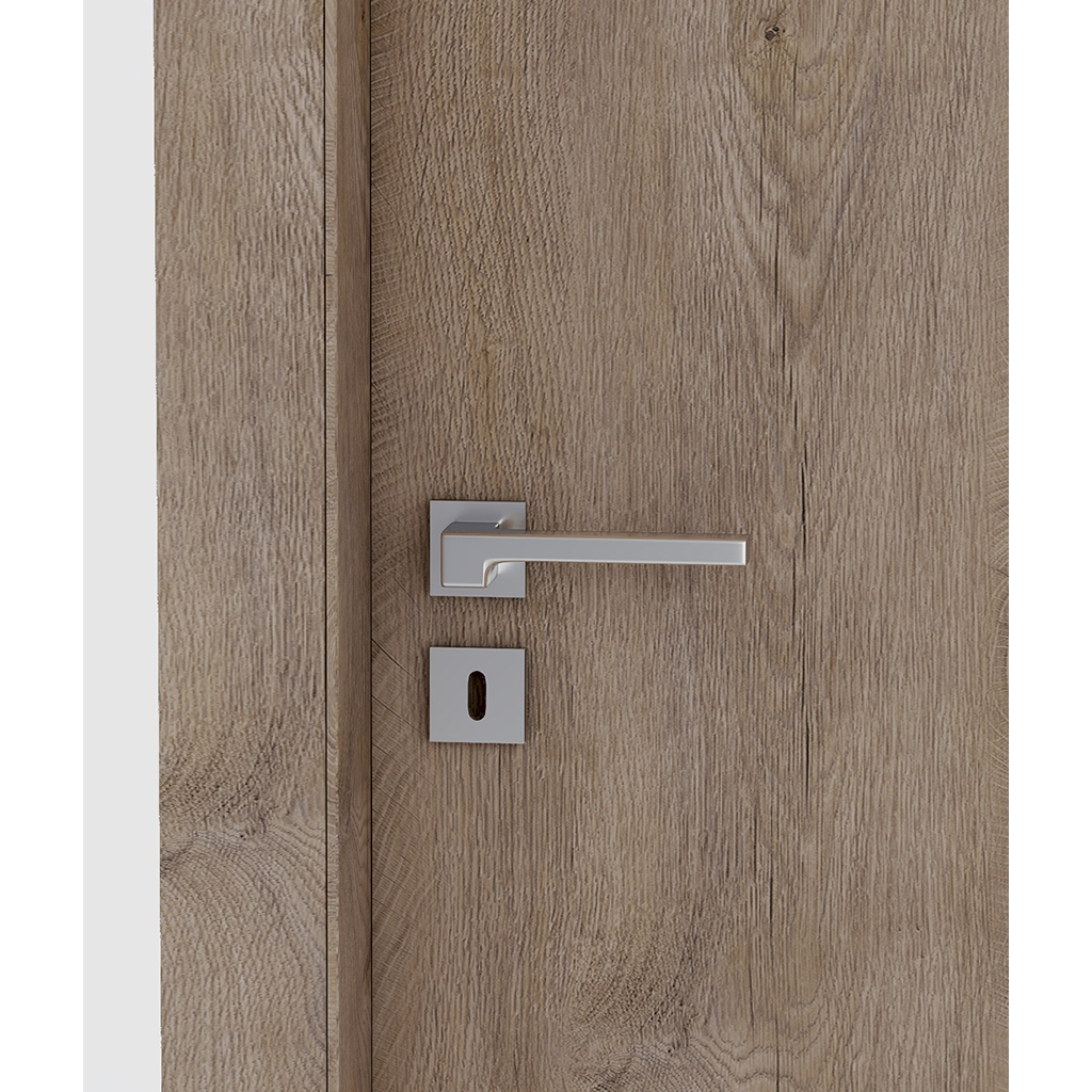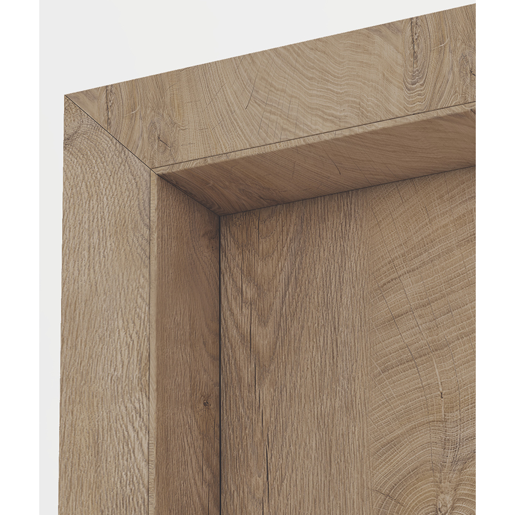 Πρεσαρισμένο αμφίπλευρα με Ινοσανίδα (MDF) και επένδυση LAMINATE ή καπλαμά, με κόλλες Πολυουρεθάνης PUR για μέγιστη αντοχή σε Υγρασία και Θερμοκρασία.