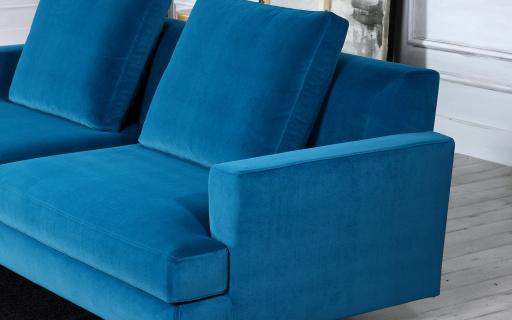 Η βάση του καναπέ αποτελείται από μασίφ ξύλο μεγάλης αντοχής και επενδύεται από αφρώδη υλικά διαφορετικής πυκνότητας. Στην γωνία η ξύλινη μπάζα συνίσταται από καπλαμά δρυός ενώ στον καναπέ είναι επενδυμένη όλη με ύφασμα. Τα μεταλλικά πόδια είναι από μασίφ χυτό αλουμίνιο με βαφή ηλεκτροστατική. Υπάρχει ένα επιπλέον πόδι με ρέγουλο στο κέντρο των μεγάλων διαστάσεων για καλύτερη στήριξη. Τα μαξιλάρια καθίσματος είναι κατασκευασμένα από λάστιχο μεγάλης αντοχής τα οποία επενδύονται με βάτα και φόδρα. Τα μαξιλάρια της πλάτης κατασκευάζονται από πούπου- λο χήνας και πολυεστέρα χωρισμένο σε κυψέλες. Στην γωνία τα υφασμάτινα καλύμματα της βάσης είναι σταθερά, ενώ στον καναπέ είναι αφαιρούμενα. Τα καλύμματα των μαξιλαριών και στις δύο εκδοχές είναι αφαιρούμενα.
