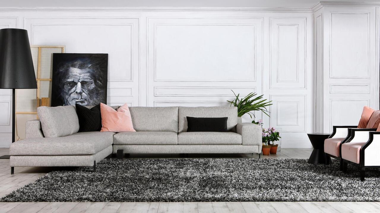 Η βάση του καναπέ αποτελείται από μασίφ ξύλο μεγάλης αντοχής και επενδύεται από αφρώδη υλικά διαφορετικής πυκνότητας. Τα μεταλλικά πόδια αποτελούνται από μασίφ σίδερο με βαφή ηλεκτροστατική. Υπάρχει ένα επιπλέον πόδι με ρέγουλο στο κέντρο των μεγάλων διαστάσεων για καλύ- τερη στήριξη. Τα μαξιλάρια καθίσματος είναι κατασκευασμέ- να από λάστιχο μεγάλης αντοχής τα οποία επενδύονται με βάτα και φόδρα. Τα μαξιλάρια της πλάτης κατασκευάζονται από πούπουλο χήνας και πολυεστέρα χωρισμένο σε κυψέλες. Τα υφασμάτινα καλύμματα της βάσης είναι σταθερά, ενώ τα καλύμματα των μαξιλαριών είναι αφαιρούμενα.