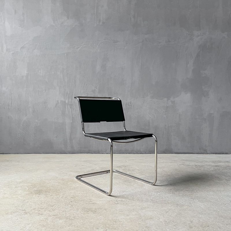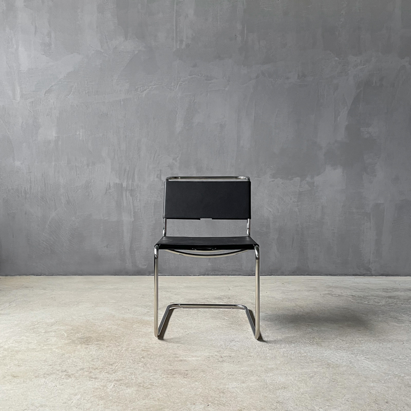 Καρέκλα από ανοξείδωτο ατσάλι χρωμίου με μαύρo δέρμα