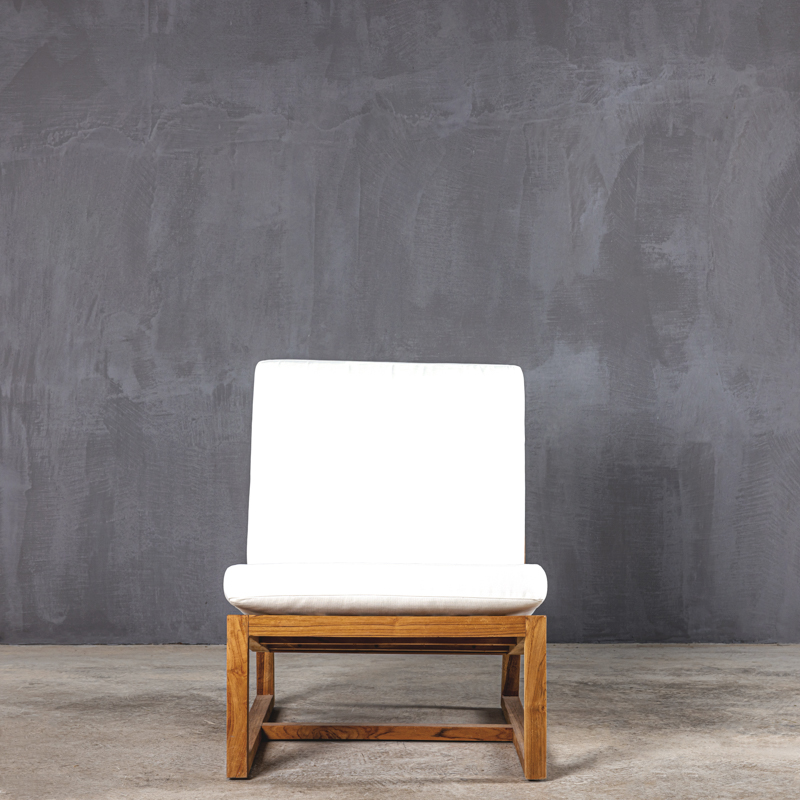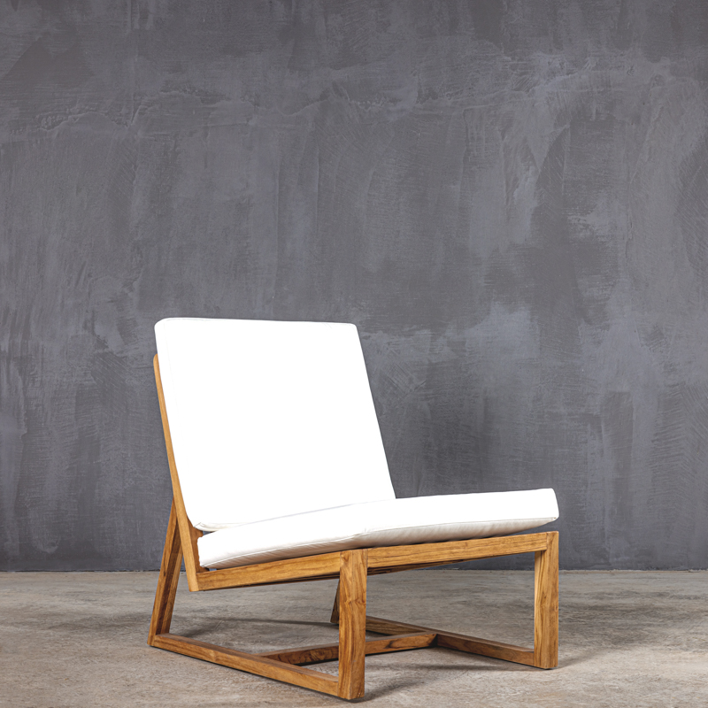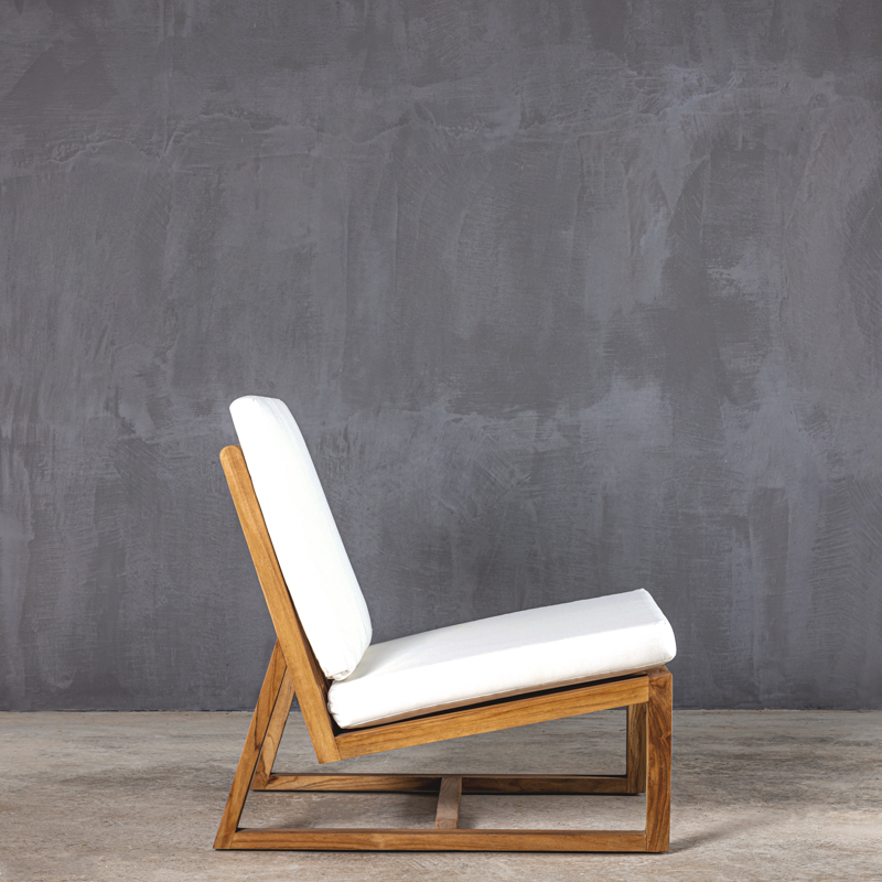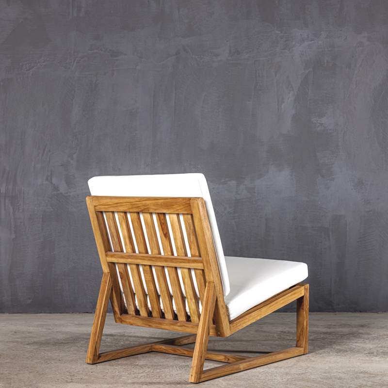 Καρέκλα θαλάσσης με σκελετό από μασίφ ξύλο τικ ποιότητας Β’ και λευκά σκληρά βαμβακερά μαξιλάρια twill.
