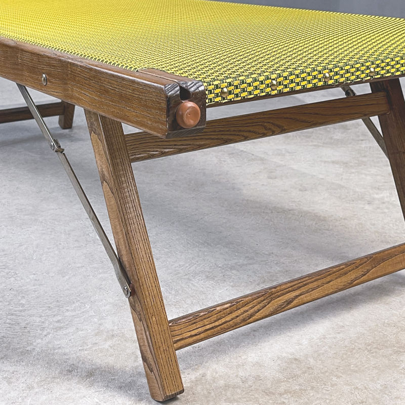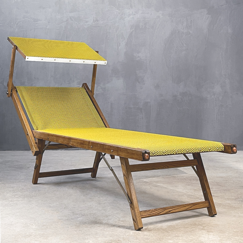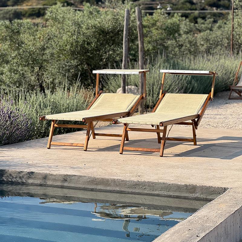 Παραδοσιακή ξαπλώστρα 3 θέσεων. Διατίθεται με ή χωρίς σκιαστρο . Με ξύλινο σκελετό από μασίφ ξύλο φλαμούρι, με 3 κλίσεις της πλάτης .