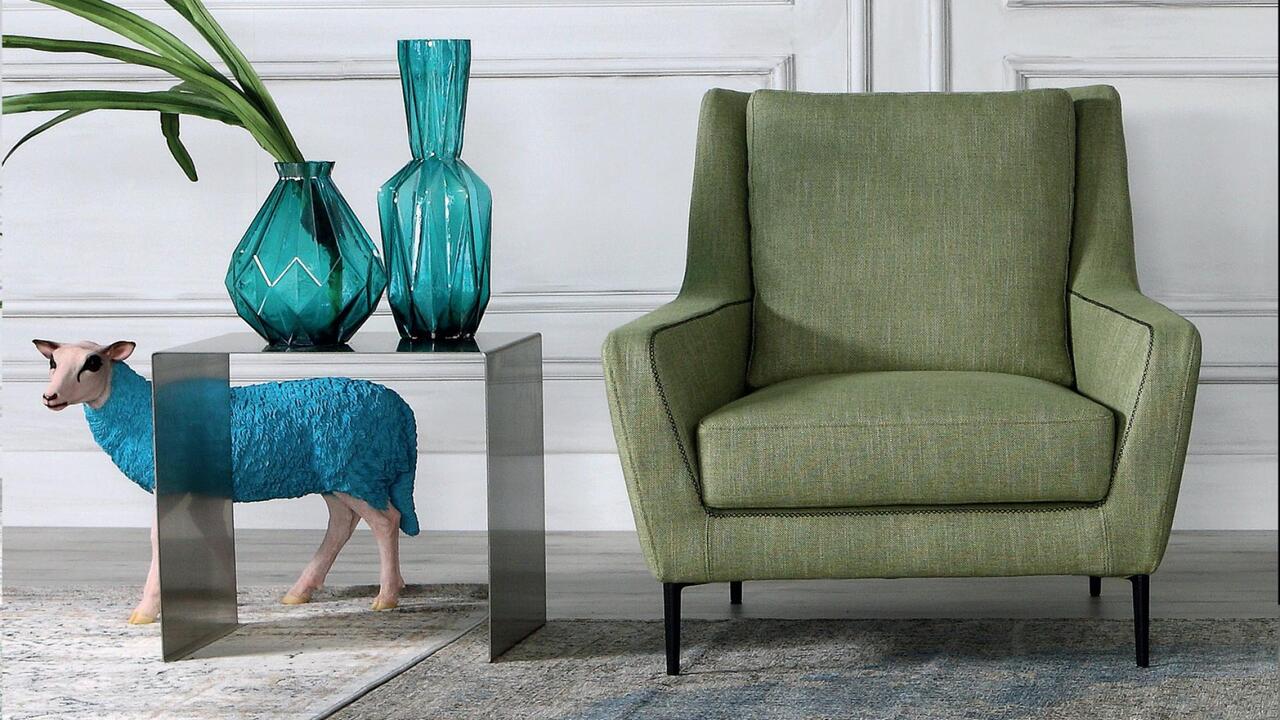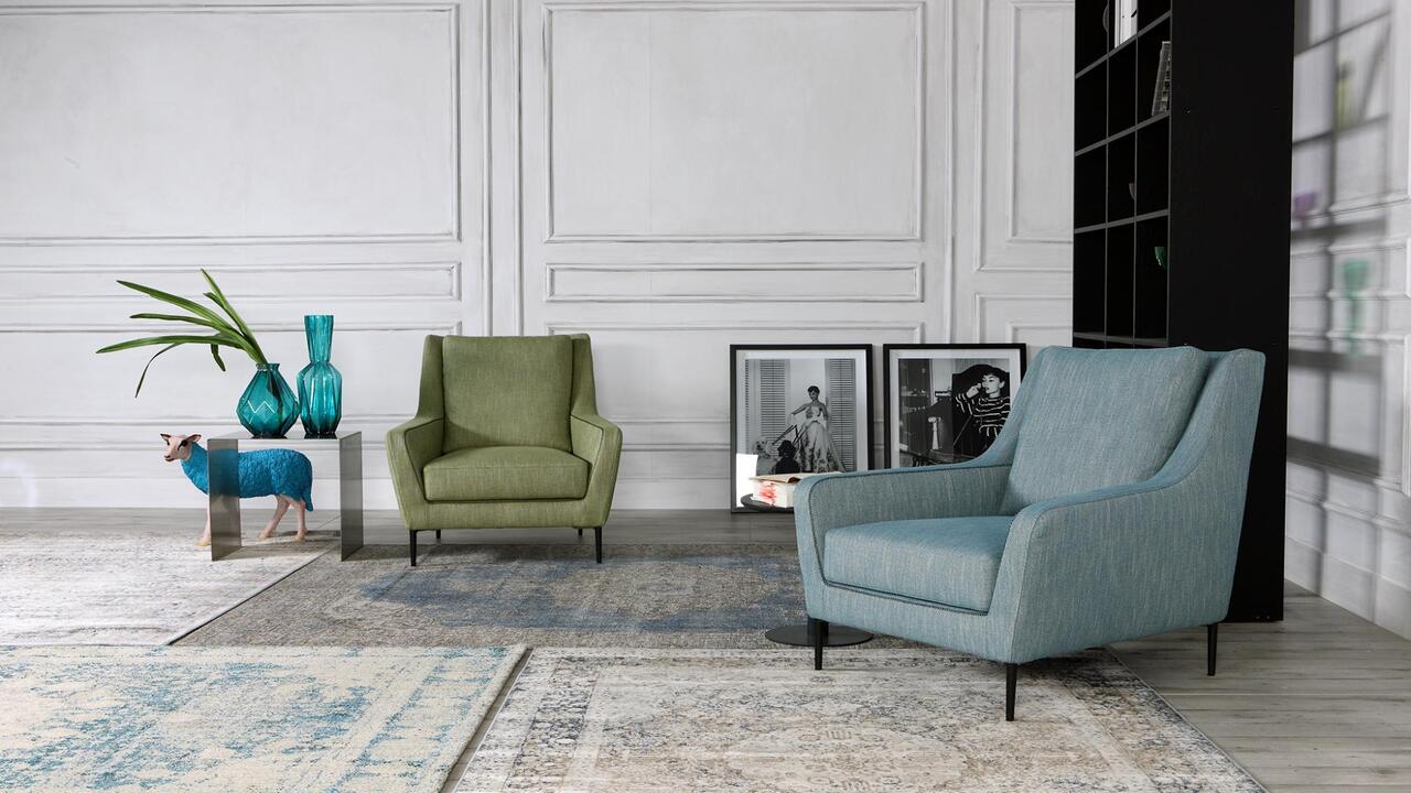 Η βάση της πολυθρόνας αποτελείται από μασίφ ξύλο και επενδύεται από αφρώδη υλικά διαφορετικής πυκνότητας. Τα μεταλλικά πόδια αποτελούνται από μασίφ σίδερο με βαφή ηλεκτροστατική. Τα υφασμάτινα καλύμματα είναι αφαιρούμενα.