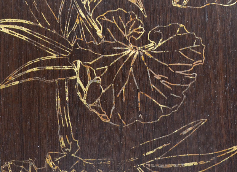 – Επιχρυσωμένα φύλλα: Επιχρυσωμένα φύλλα από αληθινό χρυσό ή φύλλα μετάλλου που έχουν την όψη χρυσού, ορείχαλκου, ασημιού.. εφαρμόζονται σε όλη την επιφάνεια ή ακολουθώντας ένα σχέδιο (stencil).