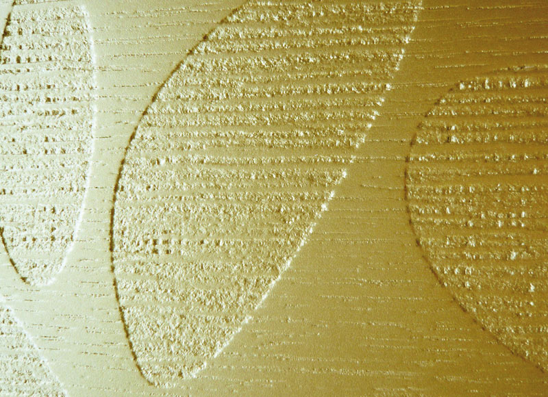 – Επιχρυσωμένα φύλλα: Επιχρυσωμένα φύλλα από αληθινό χρυσό ή φύλλα μετάλλου που έχουν την όψη χρυσού, ορείχαλκου, ασημιού.. εφαρμόζονται σε όλη την επιφάνεια ή ακολουθώντας ένα σχέδιο (stencil).