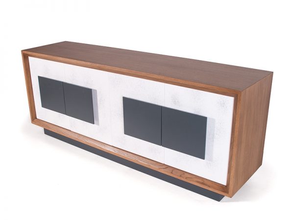 Μπουφές από ξύλο δρυός και συνδιασμό μαρμάμου και λάκας. Διαθέσιμος σε διάφορα χρώματα.