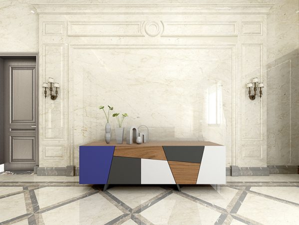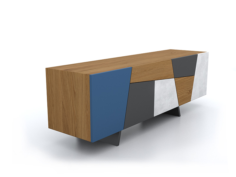 Μπουφές από ξύλο δρυός και συνδιασμό μαρμάμου και λάκας. Διαθέσιμος σε διάφορα χρώματα.