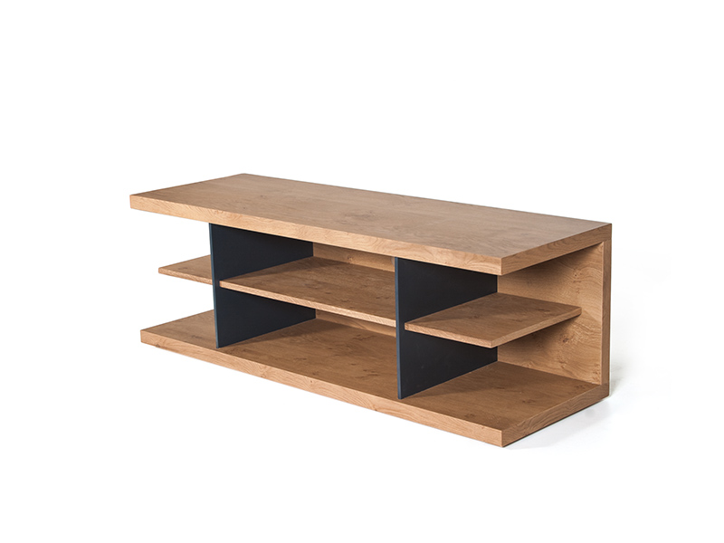 Μοντέρνο έπιπλο τηλεόρασης με μίνιμαλ σχεδιασμό, από ξύλο δρυός και μέταλλο. Διαθέσιμο σε διάφορες απόχρώσεις.
