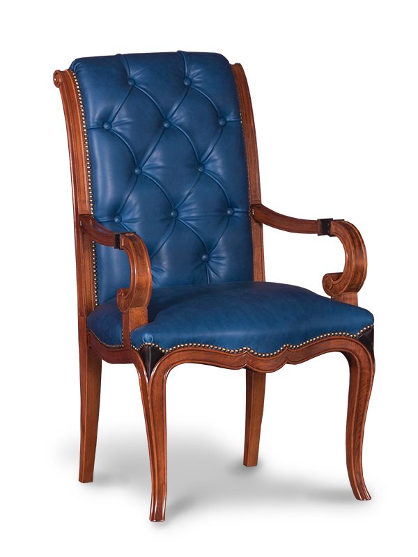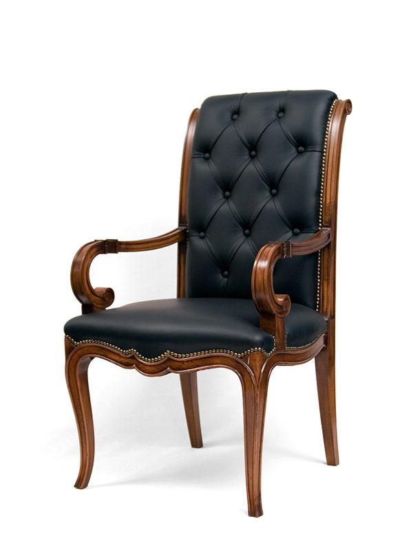 Κλασική καρέκλα από μασίφ ξύλο καρυδιάς και γνήσιο δέρμα με χειροποίητο καπιτονέ στην πλάτη. Διαθέσιμη σε διάφορα χρώματα