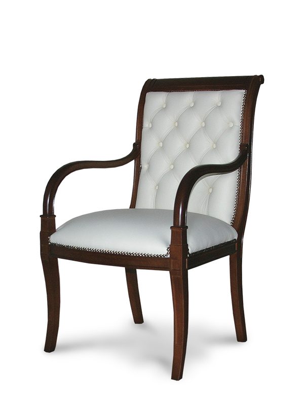 Κλασική καρέκλα από μασίφ ξύλο καρυδιάς και γνήσιο δέρμα με χειροποίητο καπιτονέ στην πλάτη. Διαθέσιμη σε διάφορα χρώματα