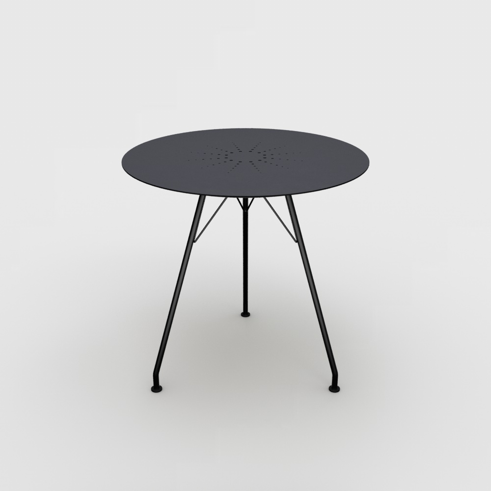 Τραπεζάκι CIRCUM Café με επικάλυψη από μαύρο αλουμίνιο με επικάλυψη πούδρας και κατασκευή από μαύρο ατσάλι με βαφή πούδρας.