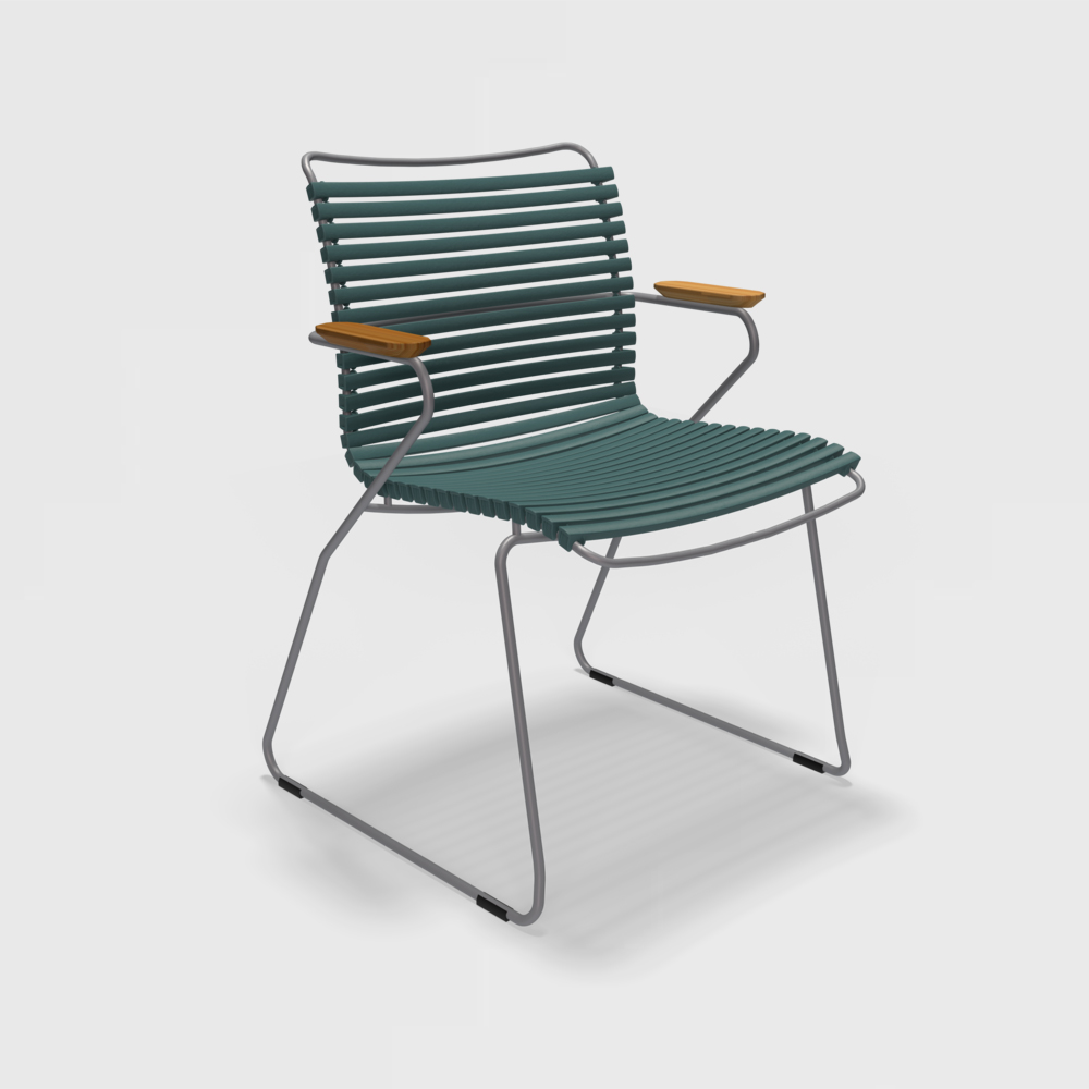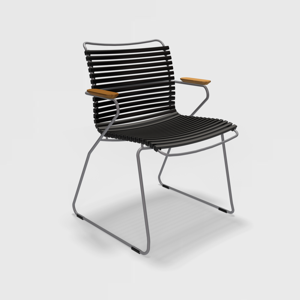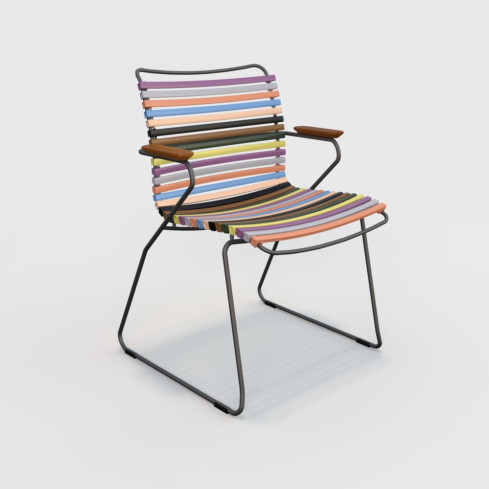 CLICK Καρέκλα τραπεζαρίας – με μπαμπού μπράτσα. ΚΛΙΚ Η καρέκλα τραπεζαρίας είναι απλή, και εργονομικά καλά μελετημένη. Είναι όμορφο στην επανάληψη του γύρω από το τραπέζι. Τα ελάσματα είναι κατασκευασμένα με ακριβώς τη σωστή αντοχή και ελαστικότητα για να παρέχουν εξαιρετική άνεση χωρίς μαξιλάρια. Τα ελάσματα μπορούν να ενεργοποιηθούν και να απενεργοποιηθούν – γεγονός που καθιστά δυνατή την τροποποίηση της εμφάνισης της καρέκλας απλά αλλάζοντας – ή αναμειγνύοντας τα διαφορετικά χρώματα της λάμας. CLICK Η καρέκλα τραπεζαρίας διατίθεται με ή χωρίς υποβραχιόνια σε 13 χρώματα. ΚΛΙΚ Η καρέκλα τραπεζαρίας με υποβραχιόνια στοιβάζεται.
