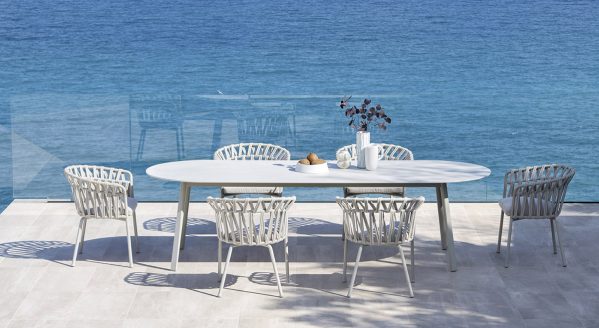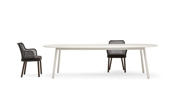 Οι απαλές και κομψές γραμμές της συλλογής Emma δίνουν σχήμα σε ένα ευρύχωρο τραπέζι, σχεδιασμένο για άνεση. Το στιβαρό ελλειπτικό τοπ στηρίζεται σε τέσσερα πόδια με κωνικό σχήμα, μια λεπτομέρεια που τα κάνει λεπτά και κομψά.
