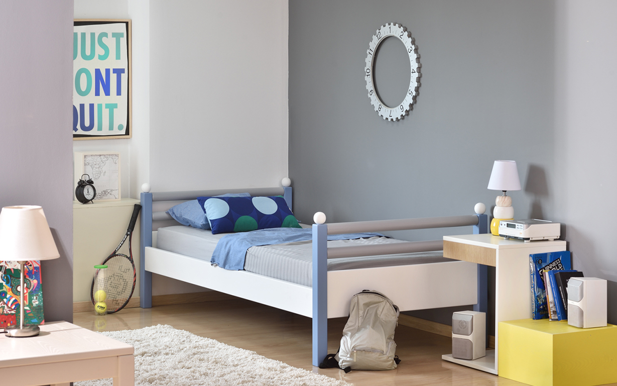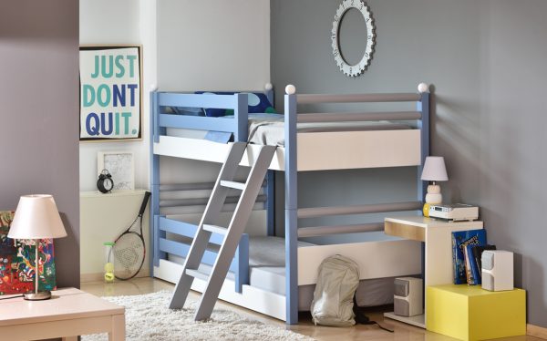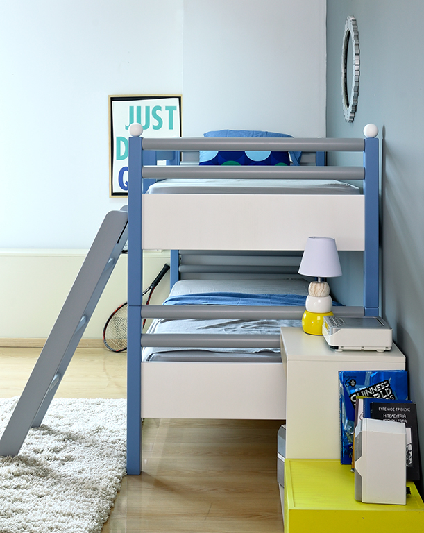 και οι στρογγυλές μπάρες των κρεβατιών του διωρόφου, το προστατευτικό και η