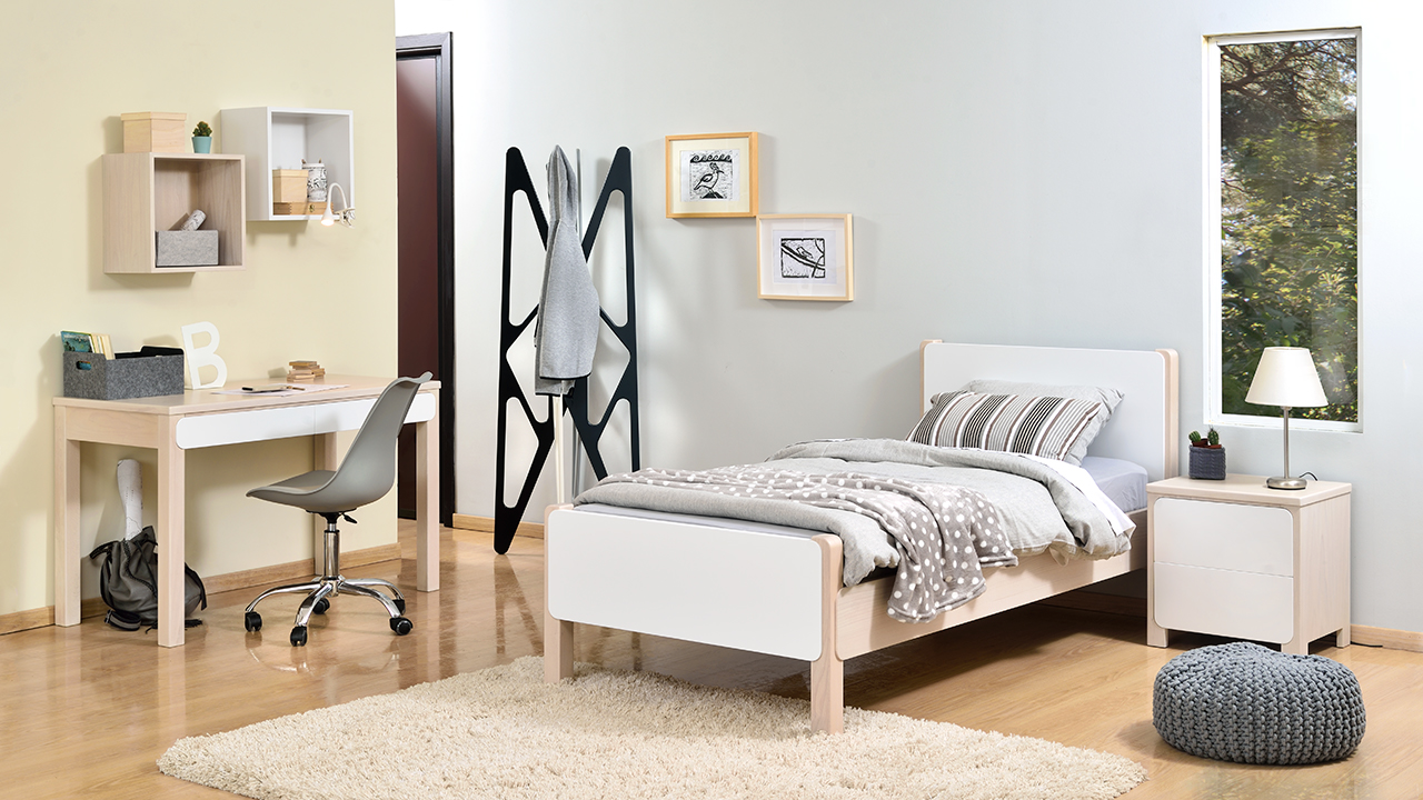 Τα πλαίσια του κρεβατιού, ο σκελετός του κομοδίνου και του γραφείου είναι κατασκευασμένα από Μασίφ Οξιά