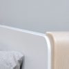 Οι ταμπλάδες και οι τραβέρσες του κρεβατιού, οι μετώπες των συρταριών, το καπάκι του γραφείου και του κομοδίνου, τα πλαϊνά και οι κρεμαστοί κύβοι είναι κατασκευασμένα από MDF/CB επενδεδυμένο με καπλαμά οξιάς.