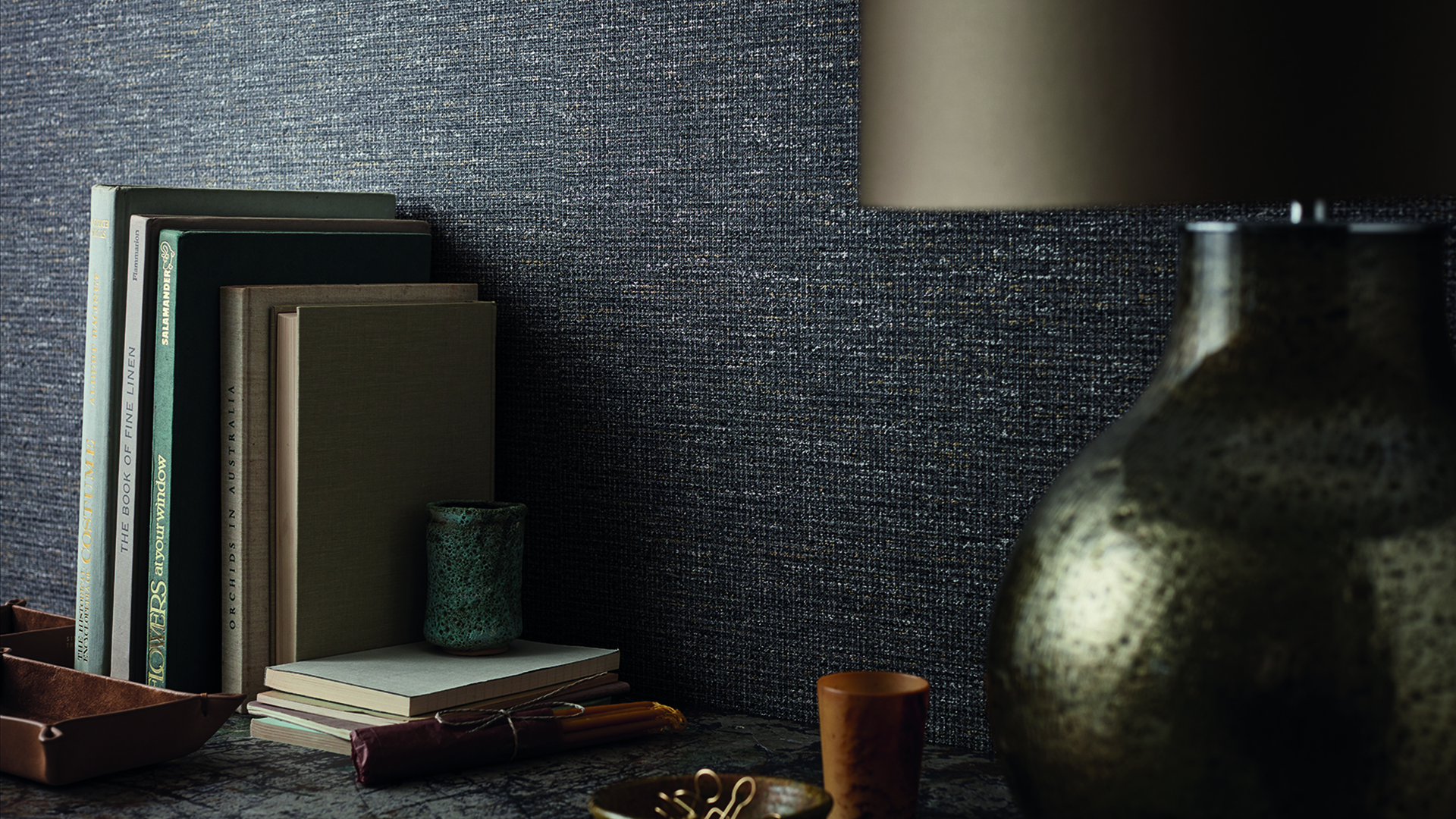 Μια ανάγλυφη ταπετσαρία από βινύλιο με την εμφάνιση ενός λεπτού υφαντού μεταξιού. Η Etsu προσθέτει μια πινελιά κομψότητας στους τοίχους με απαλές μεταλλικές ανταύγειες και υπέροχο βάθος και υφή.