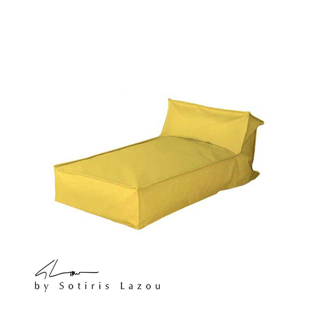 Λιτή γραμμή και ξεκάθαρο σχέδιο είναι αυτά που το καθιστούν ως ιδανική ξαπλώστρα πουφ με την υπογραφή του βιομηχανικού σχεδιαστή Σωτήρη Λάζου… Ιδανικό πουφ για την παραλία, την πισίνα ή τον κήπο! Ανάλογα την χρήση διάλεξε ύφασμα και χρώμα που ταιριάζει στον χώρο σου και εμείς θα το κατασκευάσουμε για σένα! Διαθέτει διπλή επένδυση για να αφαιρείται εύκολα το εξωτερικό κάλυμμα προκειμένου να πλυθεί!