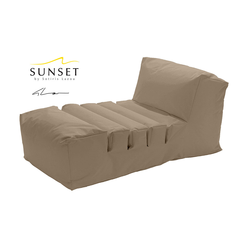 Ένα ηλιοβασίλεμα ήταν η αφορμή για τον βιομηχανικό σχεδιαστή Σωτήρη Λάζου για να εμπνευστεί και να δημιουργήσει το πουφ Sunset με χωρίσματα για μεγαλύτερη άνεση! Στις υποδοχές που διαθέτει μπορείς να τοποθετήσεις το βιβλίο ή το tablet σου για όση ώρα απολαμβάνεις το ηλιοβασίλεμα από όπου και αν είσαι… Ιδανικό πουφ για την παραλία, την πισίνα ή τον κήπο! Ανάλογα την χρήση διάλεξε ύφασμα και χρώμα που ταιριάζει στον χώρο σου και εμείς θα το κατασκευάσουμε για σένα! Διαθέτει διπλή επένδυση για να αφαιρείται εύκολα στην χρήση το εξωτερικό κάλυμμα προκειμένου να πλυθεί!