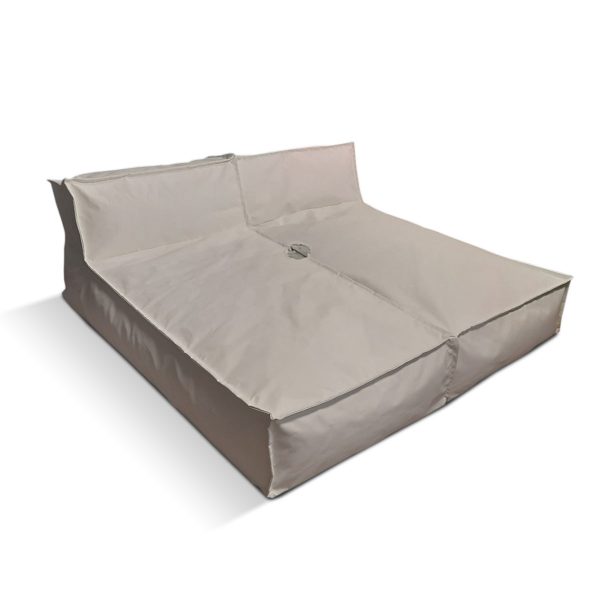 Bean Bag Del Mar Double with Umbrella Socket by Lazou: You think that we are just talking about a two-seater bean bag.. in fact they are two singles that are joined with zipper and also provide an umbrella socket! With the signature of the industrial designer Sotiris Lazou with the guaranty of Poufomania makes it ideal for the pool, the garden or the beach! Depending on the use, choose a fabric and color that suits your space and we will produce it for you! It has double lining to easily remove the outer cover in order to be washed!