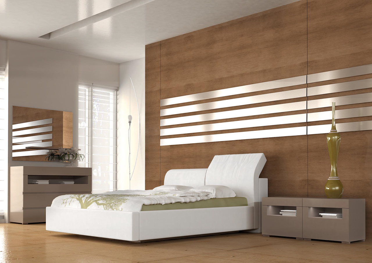 Κρεβάτι επενδυμένο με ύφασμα , οικολογικό δέρμα ή δέρμα. Μαξιλάρια πλάτης με μηχανισμό ανάκλησης πολλαπλών θέσεων. Κομοδίνα και τουαλέτα σε λάκα ματ. Τα κομοδίνα περιλαμβάνουν φωτισμό led ανάμεσα στα συρτάρια.
