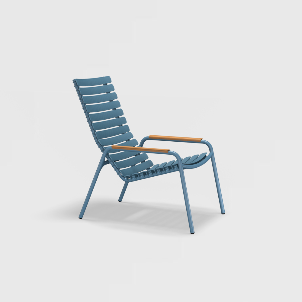 Οι ξαπλώστρες ReCLIPS διατίθενται σε 4 μονόχρωμα χρώματα με την επιλογή υποβραχιόνων από μπαμπού ή αλουμίνιο. Ο σκελετός αλουμινίου σε συνδυασμό με τα πλαστικά ελάσματα που προστατεύονται από την υπεριώδη ακτινοβολία, κρατούν τη συντήρηση στο ελάχιστο.