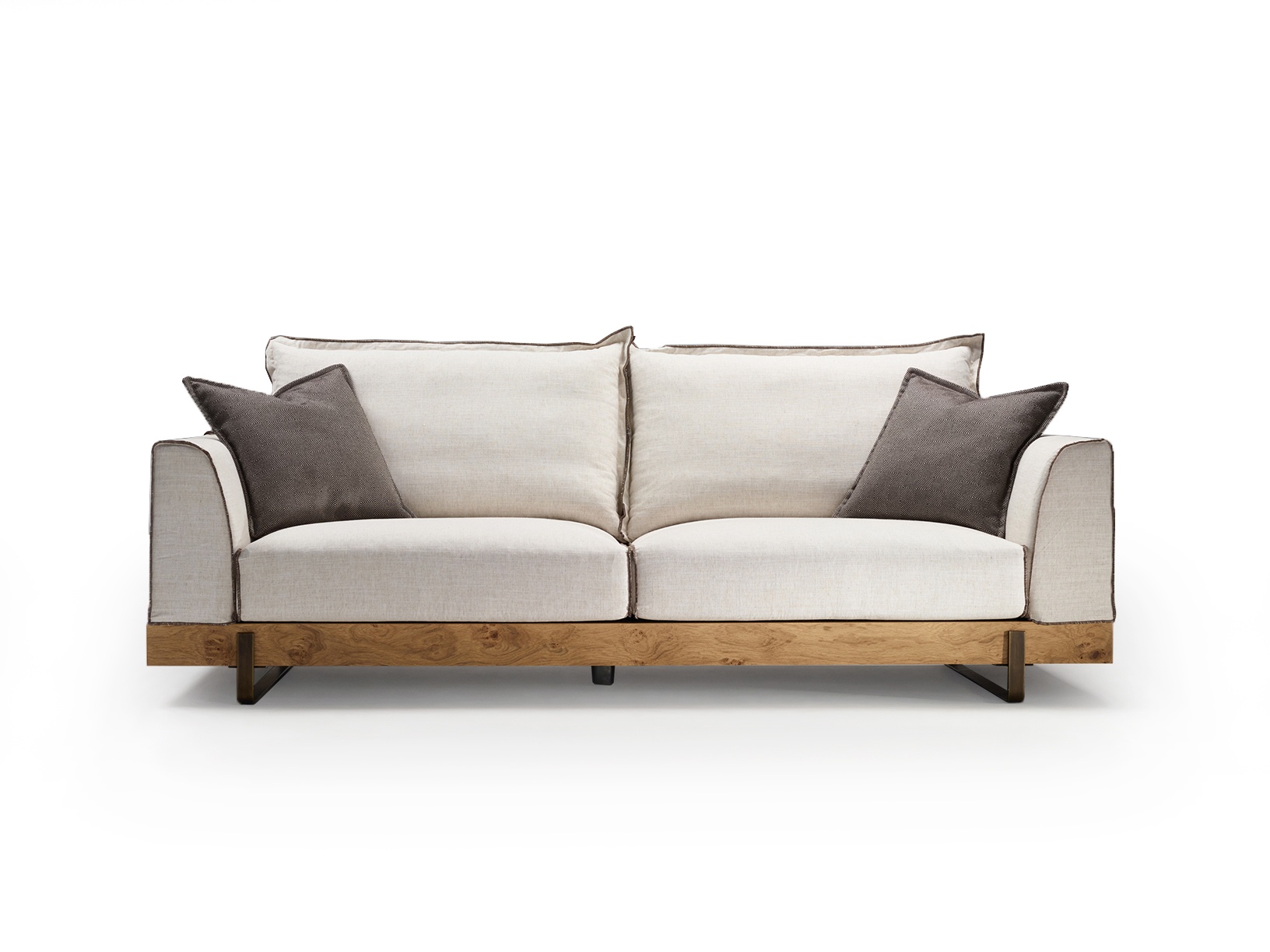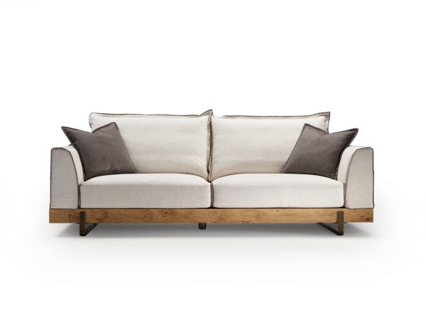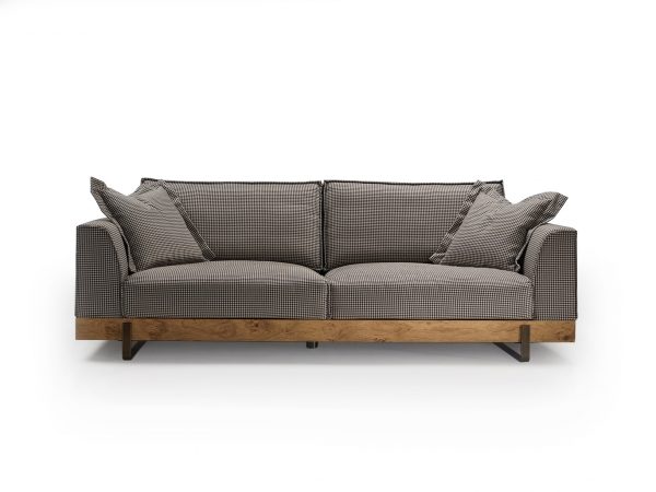 Καναπές σε μασίφ σκελετό σε διάφορες διαστάσεις, με εμφανή σιδερένια πόδια και ξύλινη μπάζα, σε ποικιλία υφασμάτων.