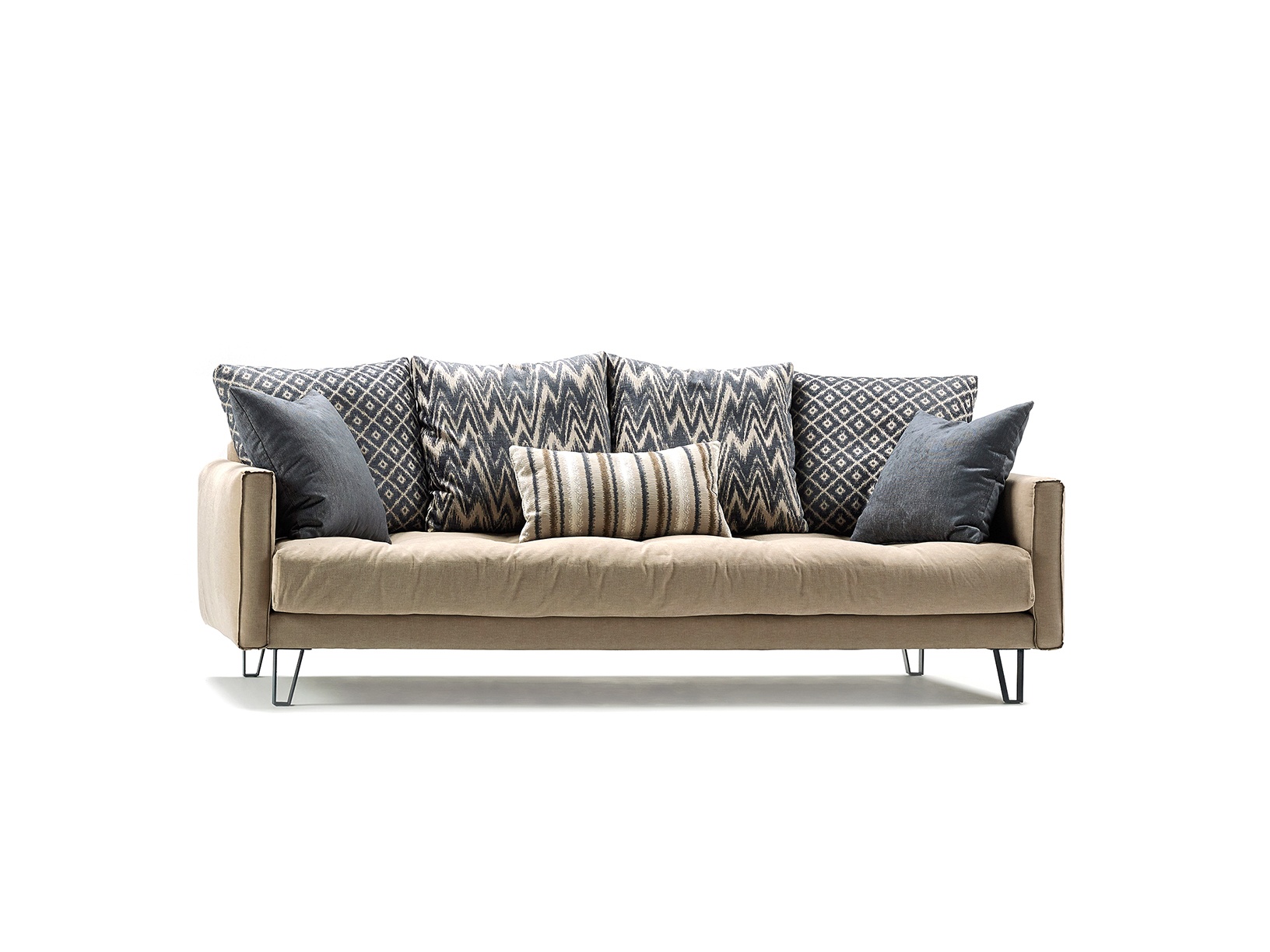 Καναπές σε μασίφ σκελετό σε διάφορες διαστάσεις, με εμφανή σιδερένια πόδια, σε ποικιλία υφασμάτων.