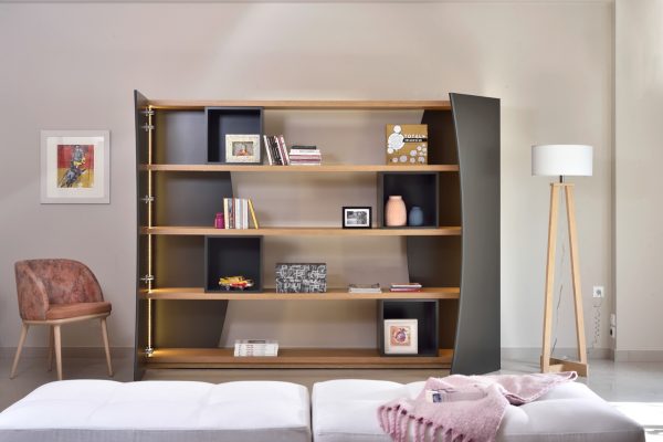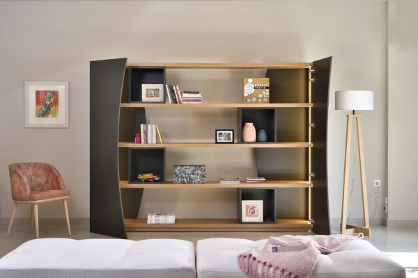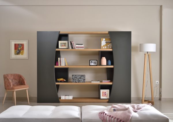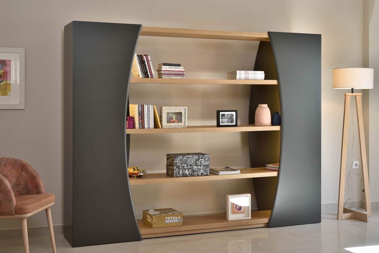 επιλογές.Πλαίσιο από λακαρισμένο ξύλο σε πολλές χρωματικές επιλογές και ράφια σε δρυ, δρυ