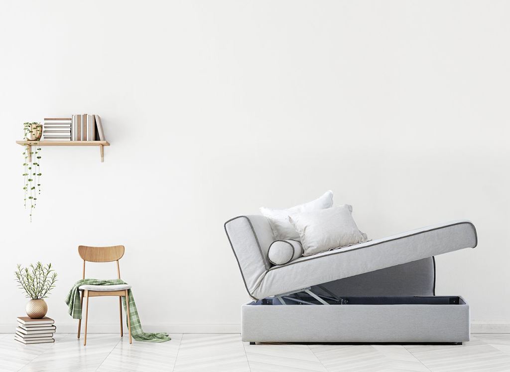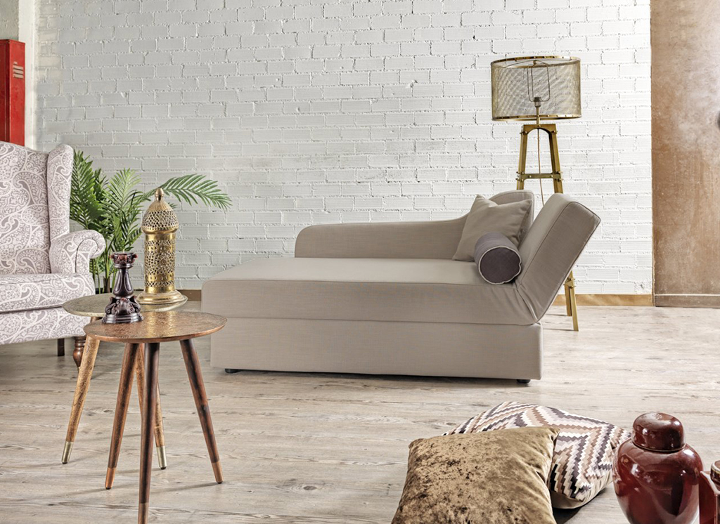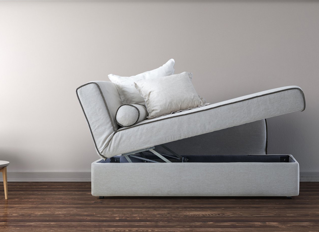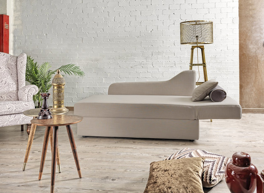 Διθέσιο ανάκλινδρο που μετατρέπεται σε μονό κρεβάτι. Διαθέτει αποθηκευτικό χώρο και δύο θέσεις ανάκλισης στην πλάτη. Δυνατότητα κατασκευής του μπράτσου, δεξιά ή αριστερά.