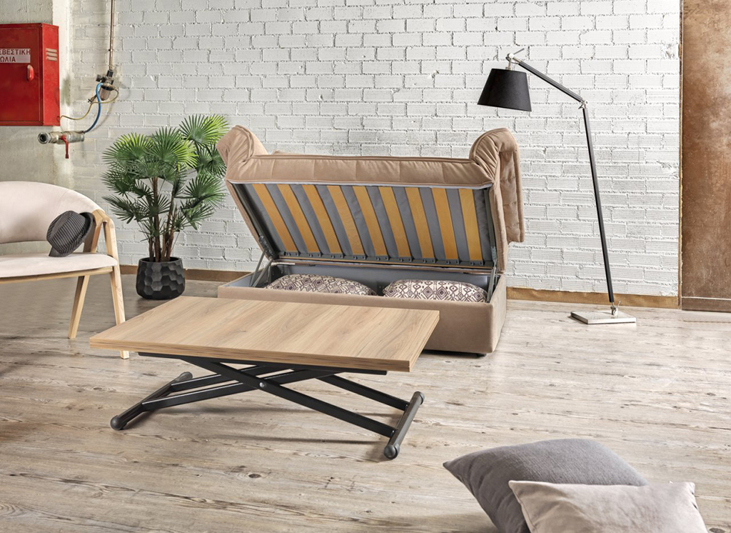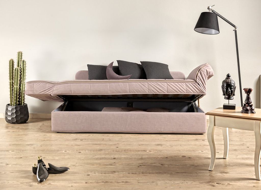 Καναπές που μετατρέπεται σε μονό κρεβάτι. Διαθέτει αποθηκευτικό χώρο. Κατασκευάζεται σε τριθέσιο και διθέσιο καναπέ.