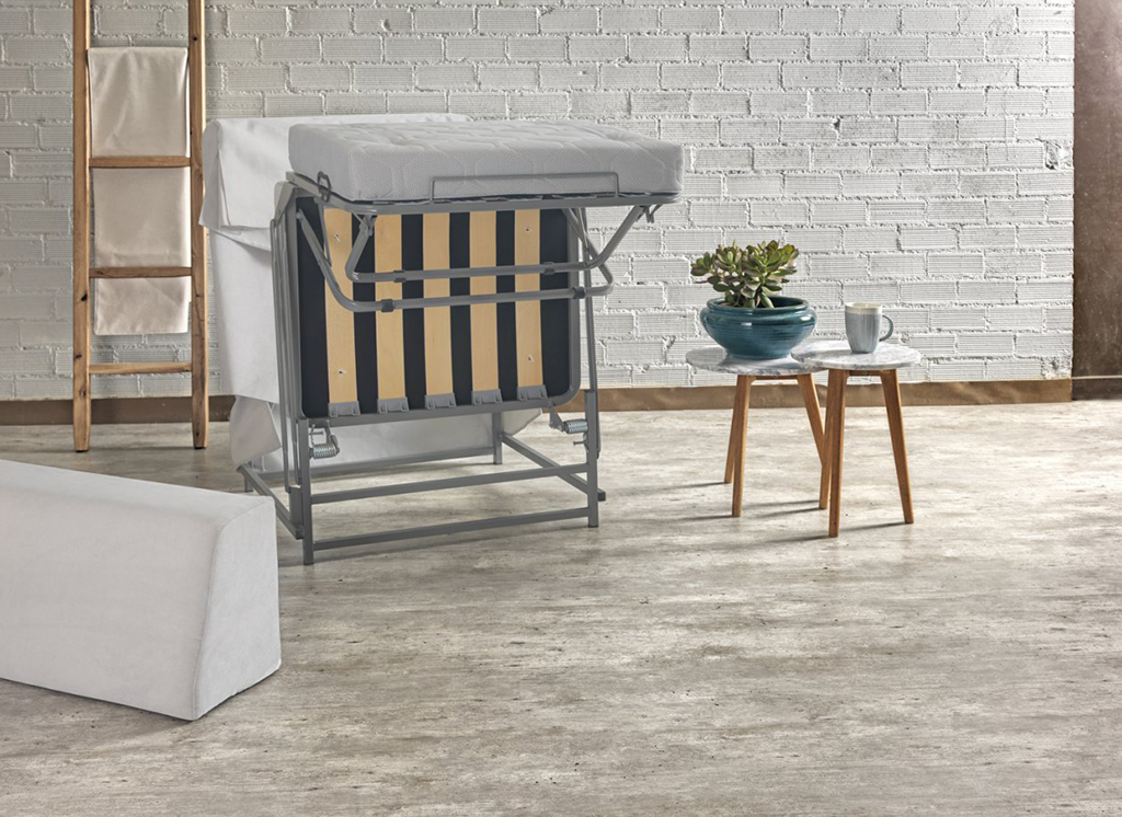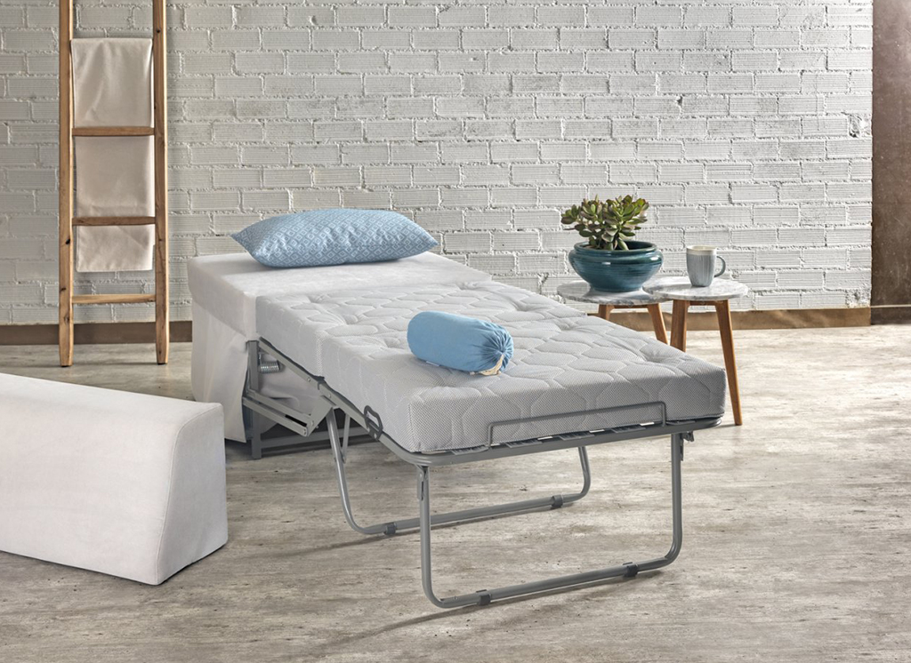 Σκαμπό που μετατρέπεται σε μονό κρεβάτι. Διαθέτει μαξιλάρα πλάτης. Δυνατότητα κατασκευής σε διάσταση 1.20×0.80, για κρεβάτι διάστασης 1.20×2.00.