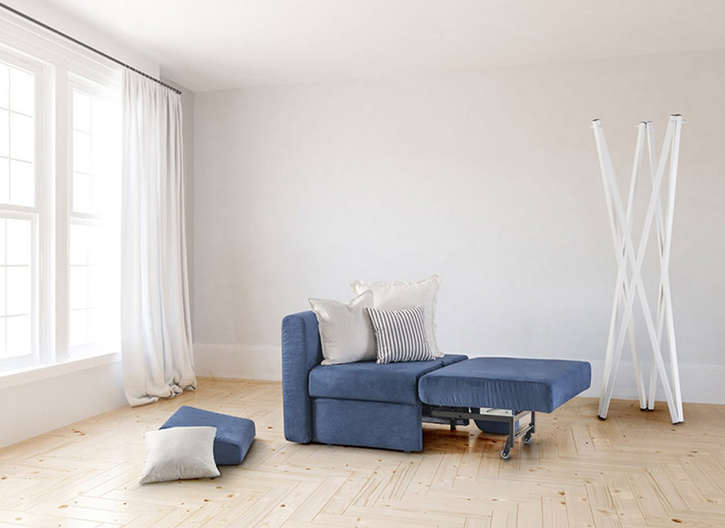 Πολυθρόνα που μετατρέπεται σε μονό κρεβάτι. Μετατρέψτε το σε ανάκλινδρο ανοίγοντας μόνο το ένα μπράτσο.